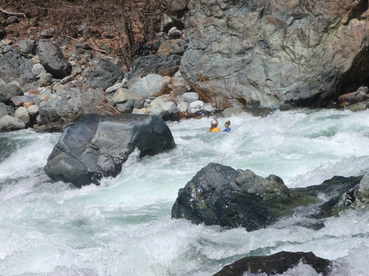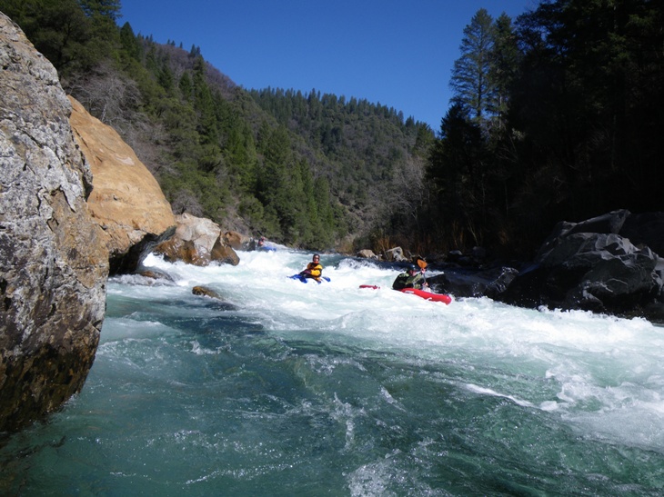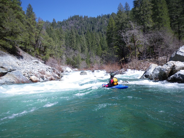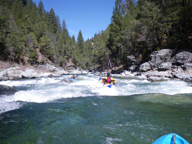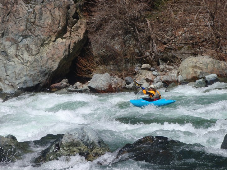 Put-in: Head back up Marysville Road to Highway 49, turn left and continue for 10 miles or less. You will cross the North Yuba, start looking for a place to put on. There are several turn-outs or campgrounds that can be used.