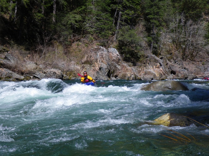- Junky then Boof (III). The rapid starts with a junky boulder bar cascade, try not to flip. It then lands in a short pool which leads to a nice boof on the right or a large hole on the left.
