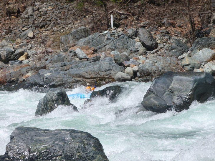 Just a Long Class III Part 1 (III+). A large boulder bar appears, it turns out to be a lot easier than you would think. We just ran down the middle. Easy to boat scout. It ends in a couple nice but reasonably small holes.