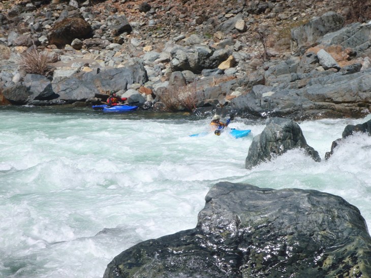 The run was actually a very nice run. I think if it weren't for the lake at the end it would get run a lot. We thought it would be a great run that is a step up from Chili Bar. At 1,000 cfs there were several easy class IV's and lots of class III. One rapids stood out as harder, but that is more because the intimidation factor. As long as you point it straight and stay up right, it was a straight shot. A scout is desired though, as we were too nervous just to enter the rapid as it was steep and rocky.