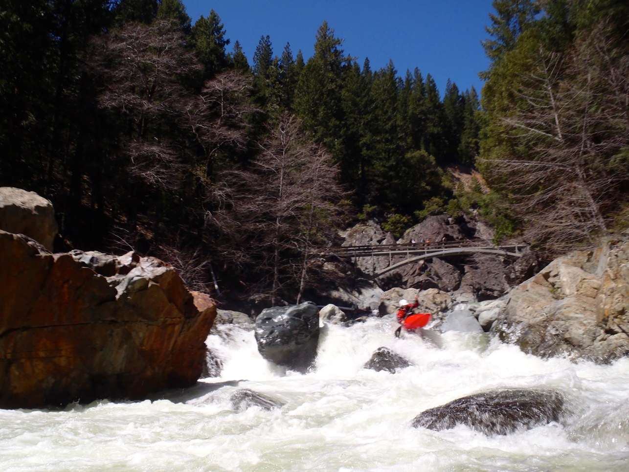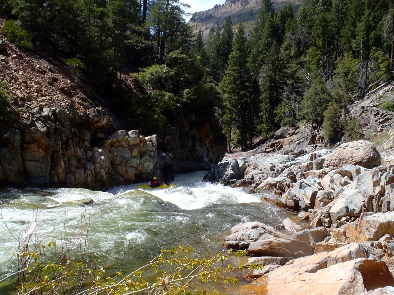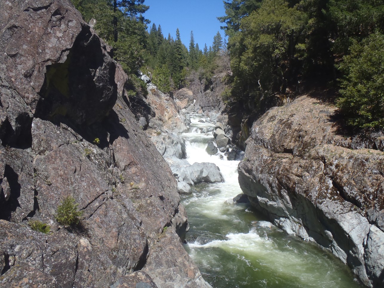 Put-in: Head back out to highway 49 and turn right to head upriver. Continue for 1.3 miles to a turnout on the river-side side of the road (one turn-out past the one that has a gate on it). There is a trail that leads quickly to the PCT and turning left on the trail leads to the bridge. Put-in on the far side of the bridge.