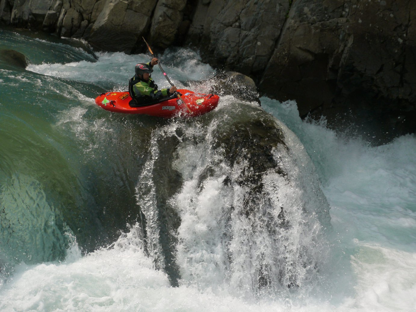 Sievy (IV to IV+). At higher flows, we snuck it down the left micro channel boofing a nice 5 foot drop. At low flows, the hole in the mainline down the right was more doable and folks boofed through.