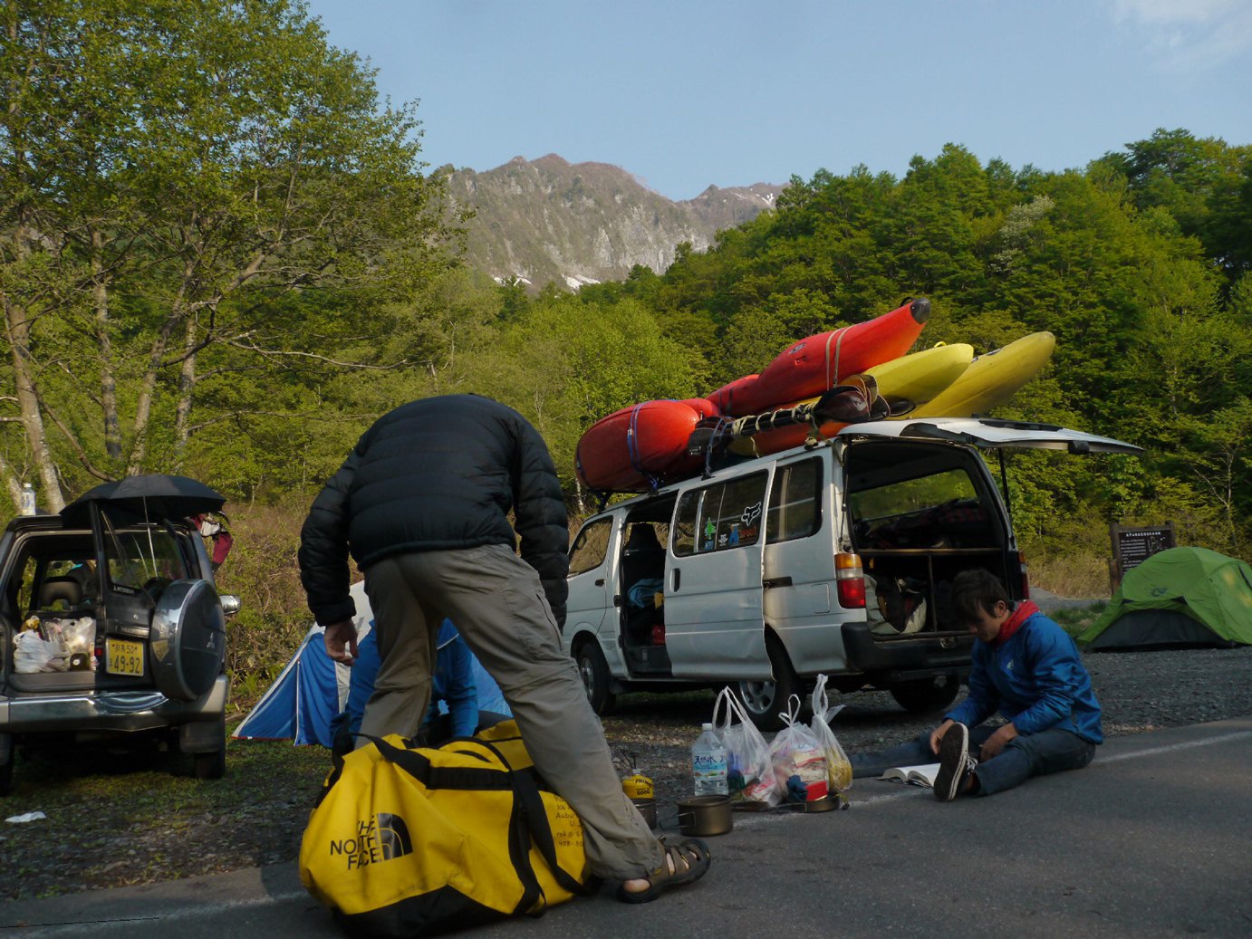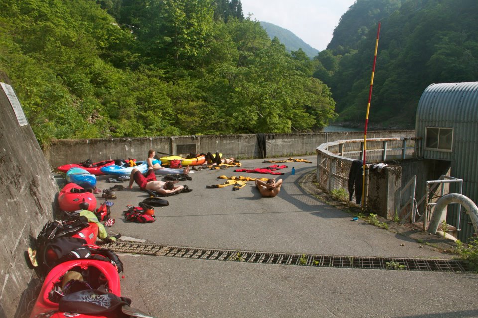 That night, we headed up the Nakatsugawa to its tributary, the Zakogawa and found a nice roadside turnout at a trailhead that we set up camp at and called home for the next 4 nights. The highlights were the hot springs at the confluence of the Nakatsugawa and Zakogawa that we visited 3 of the nights. The lowlight, was forgetting my sleeping bag at Lincoln's and being forced to spend the next 5 or 6 nights sleeping in everyone's kayak bags from the flight over as well as using the paddle bag as a blanket. Additionally, it required I use my Kokatat onesy layer to stay warm which meant I couldn't boat in the only warm layer I brought with me due to not wanting it to be wet from sweat... in summary, I regretted forgetting my sleeping bag.