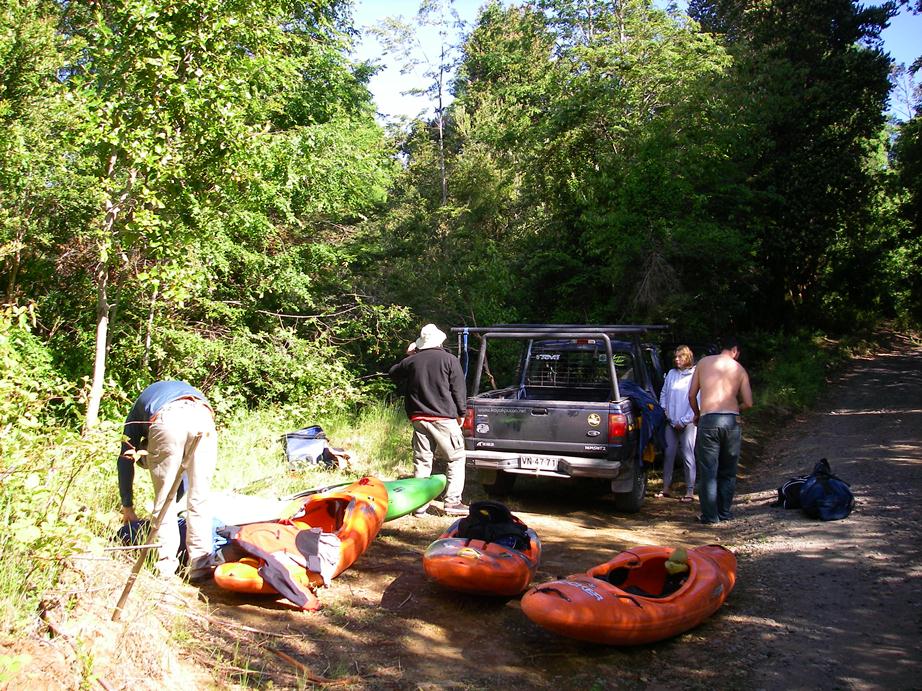 Put-in: Head out of Pucon on Camino Internacional, cross the Rio Turbio and the Rio Trancura. About 5.5 km past the Trancura, turn left at the fork onto S-907. Drive towards Huife, past signs for the Tres Saltos. Keep an eye out for signs to Lefincul and a dirt road dropping down to your left towards Lefincul. Take the dirt road, cross over the Rio Liucura (small here) and continue up a km or so to the first clearing (meadow) on the left of the road and continue a few hundred yards further to the next turnout on the left. We parked here, and hiked the 15 minutes up the road to a large meadow on the left with an obvious break in the brush line allowing access through the barbwire. This is all private property, hence we did not park at the hike in point.