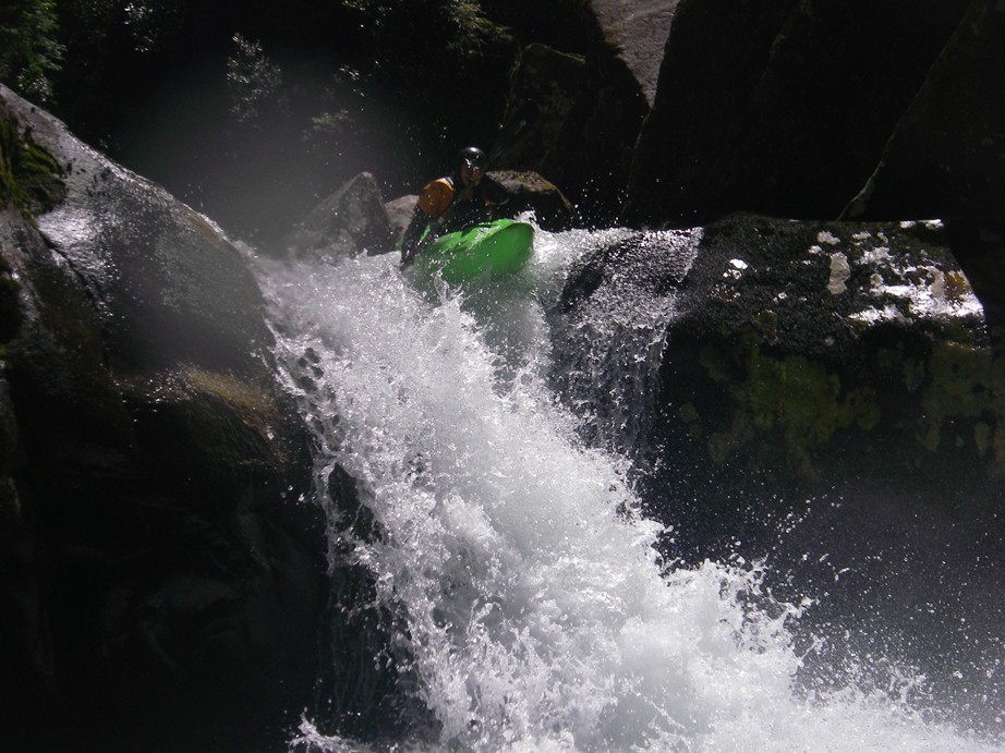 Must Run (V- to V). After a hundred yards of class II mank, you will notice a large canyon and horizon line looming downstream. Hope out on the right to scout. The line is obvious and not that hard. Just boat over the tree just under the surface, go through the pinch, and try to boof. It is intimidating but so much fun. From below you can bask in the beauty that is the Nevado Canyon. Also, portaging really is not an option, nor is a throw and go, it is a must run falls.