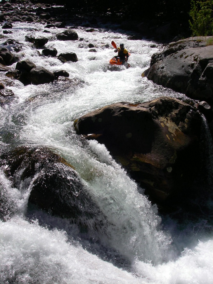 The Upper Nevado is among the most famous runs near Pucon, perhaps second only to the Palguin. The river has everything that a class IV-V steep creek can to insure a great day. From slides, to must-run waterfalls, to sections containing back to back moves not to mention the gorged out canyon to provide you that nice cozy feeling of being completely locked into a river, this creek has it all.