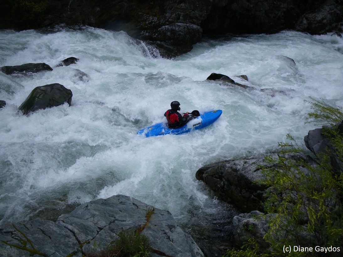 Finally, last year (2010) came around and I had the chance to run the river at optimum flows of 1,000 cfs. However, thanks to a flare up of my bummed shoulder while boating Lower Hayfork Creek the prior day, I decided to play it safe and resign myself to shuttle duty. This year however, Darin, Diane and I went up North for a friend's Baby Shower BBQ Extravaganza and decided to bring our boats along. At the take-out of Burnt Ranch after a Friday run, we ran into some friends who suggested doing the New on Sunday. They assured that despite its low flows it would still be fun.