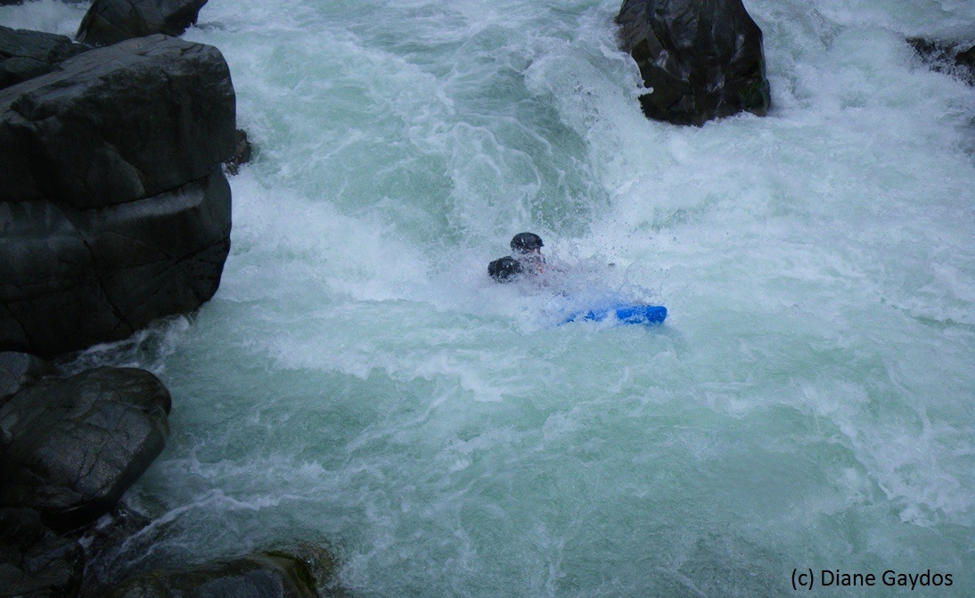 - Tombstone (V- to V). At high flows people enter right and keep staying right. At our low flows this was not possible. So the team started far left and cut to the right. A few of us also portaged on the left down into the crevice. It was a bit unstable in the eddy and putting on our skirts was a challenge as we were floating into the current.