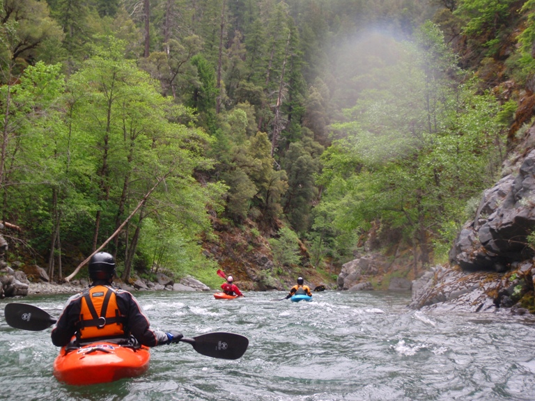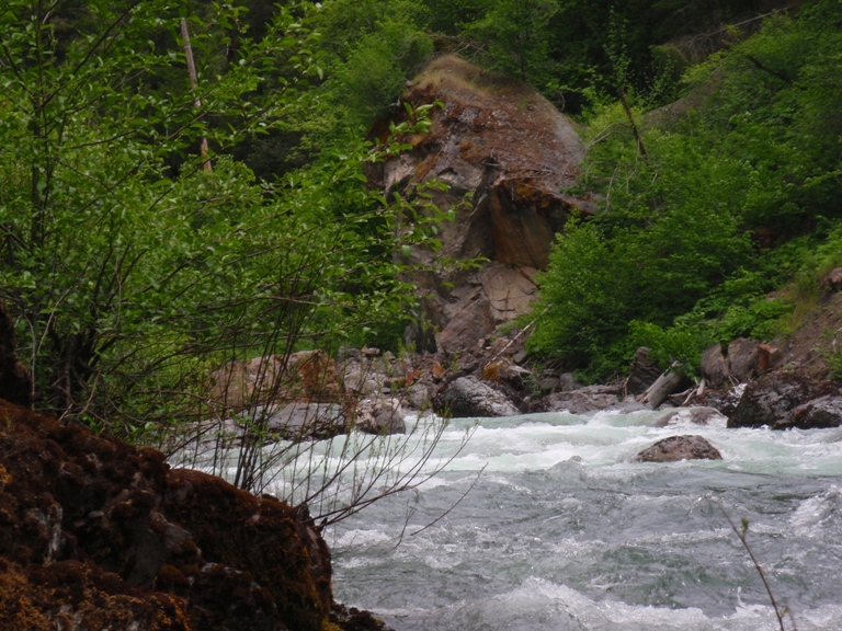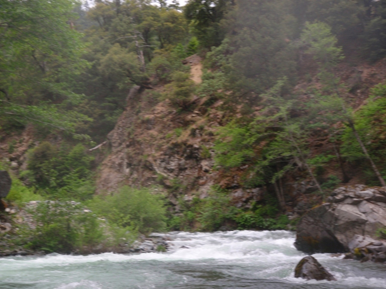 Take-out: From highway 299, in Hawkins Bar take the turn over the Trinity towards Denny. Follow this some 15 miles, at the summit make sure you stay right. not far past the first meadow with houses you will see a dirt road leading sharply back on the right. This leads a few hundred yards down to the take-out.