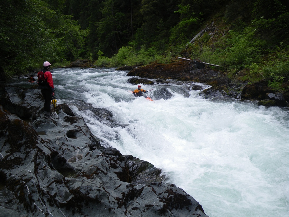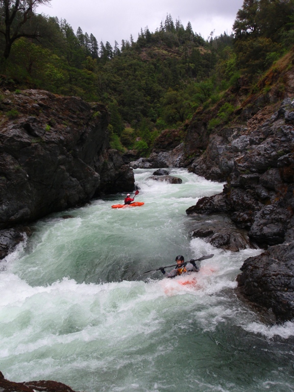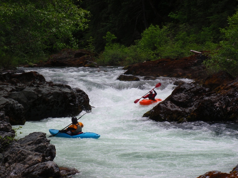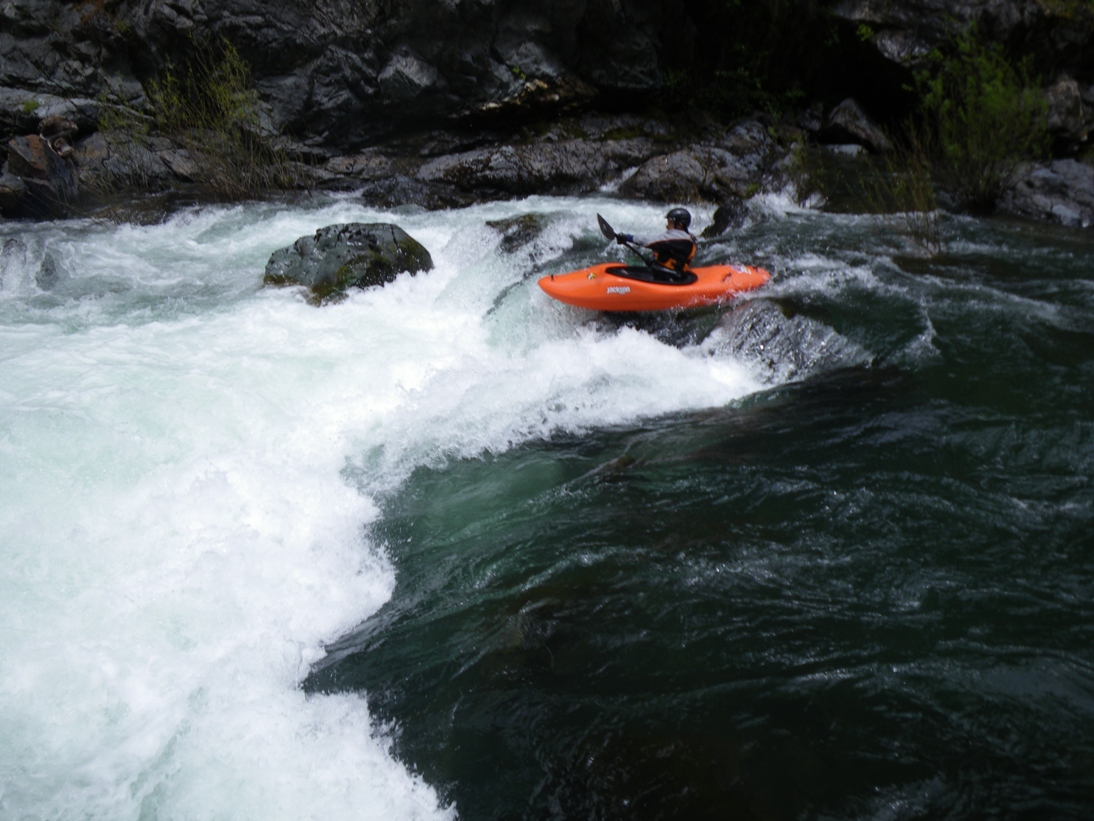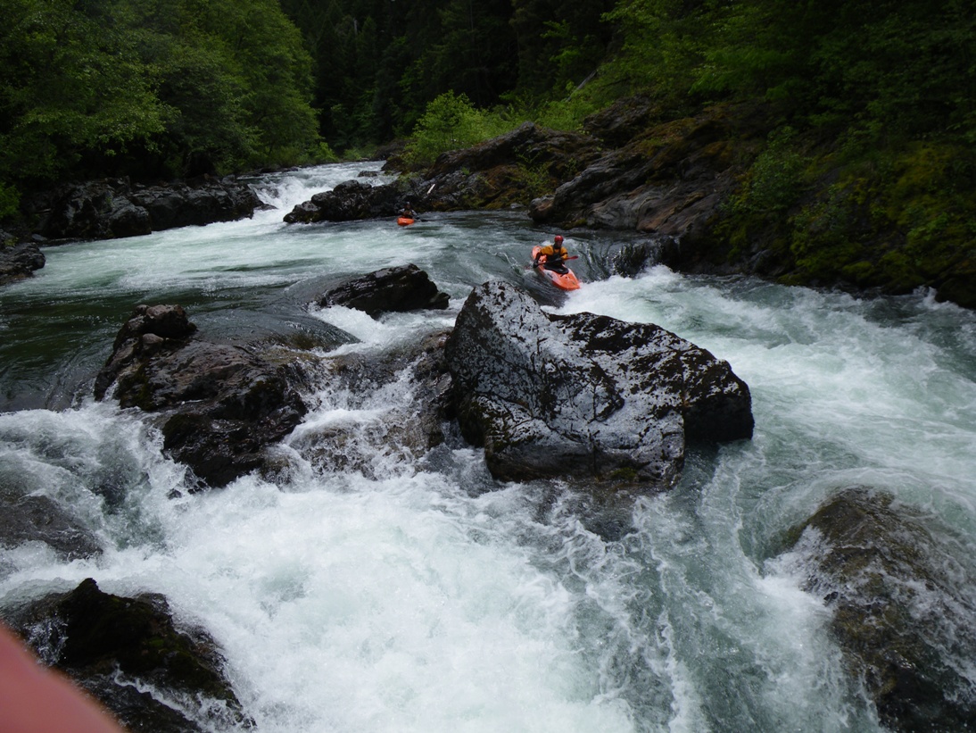 Long Rapid 1 (IV). This rapid's can be scouted from the left bank pretty easily. It consists of a hole or two to enter, then a move around a poor over rock. From here at low water you must move far left and boof down a flake. The boof helps with the landing because the water goes subsurface and could send you for a swim. There is a sneak when the water is up that avoids all the holes.