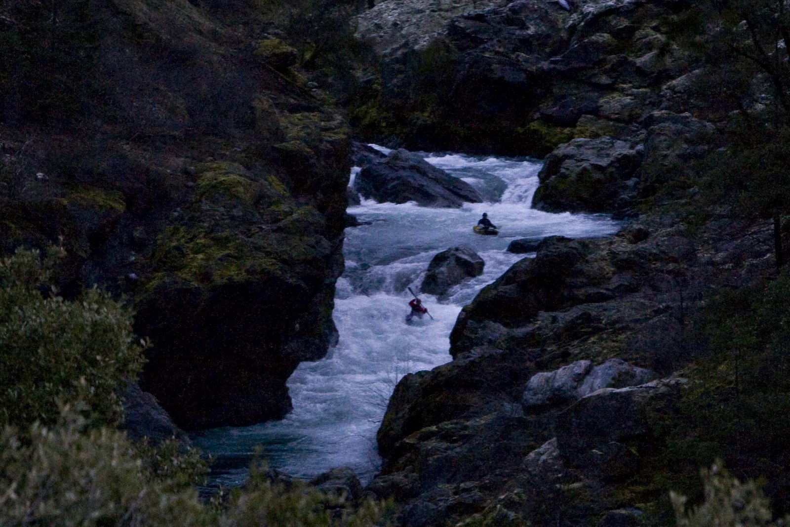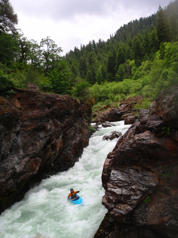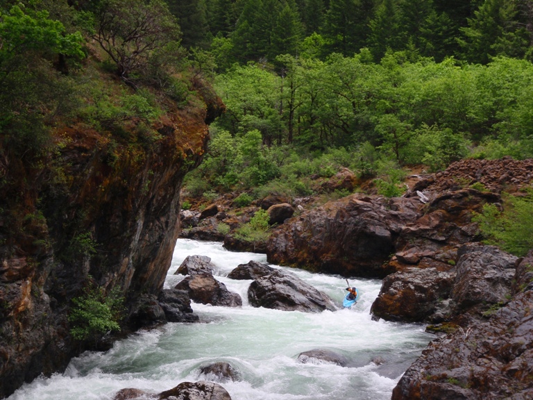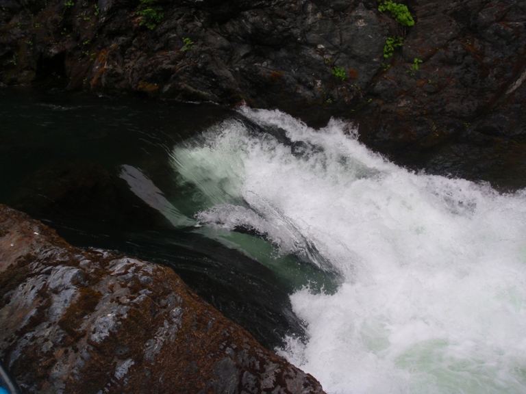 This resulted in the boat being now full of water in a fast current so after almost being drug back into the water with the boat, I had to let it go and begin to chase the boat through the 40-degree water and 45-degree air. Right here I would be saying thankfully I had a dry suit, but instead I was in thermal underwear and a dry top. So after about a third of a mile, hypothermia began to kick in. This is when I (completely exhausted and a drenaline crashing) gave up on the boat and turned just in time to see one of the sandals I had stashed in my boat float by. My partner caught up to me after a thirty-minute ordeal of his own (portaging the unknown to him hazard that had got me). This is when I began 400- foot climb out of the near vertical gorge. This gorge was made of three types of ground, loose gravel, loose boulders or poison oak. So after trying my best at the first two and setting off many landslides and a few near "Daniel Slides" I resigned to climbing up the poison oak groves on the side of the gorge.