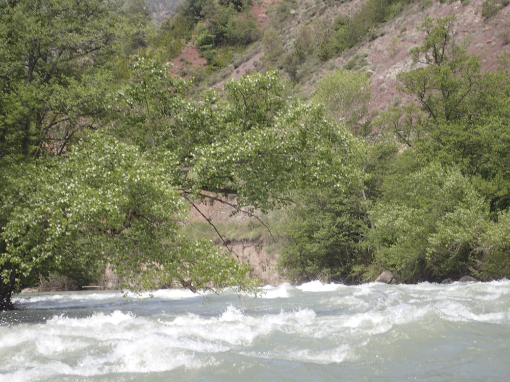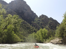 Putting in at camp we quickly found ourselves in the slalom and hole that hosted the 2001 (I think that is the year) world freestyle championships. This section of river is actually really fun, some nice fluffy holes at this flow! Then, things mellow out soon after for several kms. I found the action on this section of river to be less frequent that the section above Sort, however when there was action, I felt that it was a little bit bigger. A few less obvious lines existed, though again everything was still boat scoutable. Our plan was to go through the Congost de Collegats which was some 24 km downstream of our start. With the high water, one hour in, we went through a canyon. Having now idea what the canyon was supposed to actually look like, we thought perhaps we had reached the end and began looking for where Reiner would leave our car. Oh I forgot to mention, they went bike riding that day and were going to leave our car at take-out. I meant to bring my phone so I would have a map... but of course I forgot it. So we began getting nervous and hiked around and along the road thinking that we missed it. But... we didn't. For, around a few more corners... we passed through a small town and the canyon came into view.