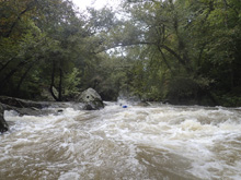 The week after Hurricane Florence (2018), the plateau got nailed with several more days of rain. This was just after the first night's sprinkling, so there weren't a lot of options... but, I had not done this run yet, so I thought it would be a good day to get it, plus it was on the good side of flow which I thought would make the mellow sections go by faster.