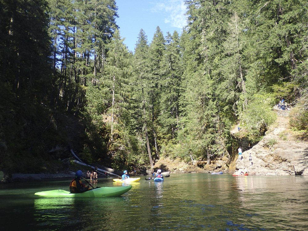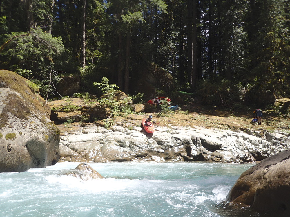 This run is well known for its clear water, canyon walls, and for a few rapids near the end. Also, depending on where you put in, it is known for its epic log jam portages that are a result of a landslide several years back. So, most everyone these days put-in at the Secret Camp maybe a mile or so below the Ohanapecosh Campground which cuts out all of the epic log jams.