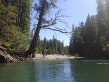 Put-in: Continue up US-12 for 3.7 miles. Look for a dirt road that drops down to the left, it is in pretty good shape (in 2018 at least). Follow this down, and then at the fork stay right. Put-in involves a seal launch into the river. This is the Secret Camp put-in. This is most commonly used since upstream is full of wood. If you get to the park entrance (Mt. Rainier National Park) you went too far on US-12.