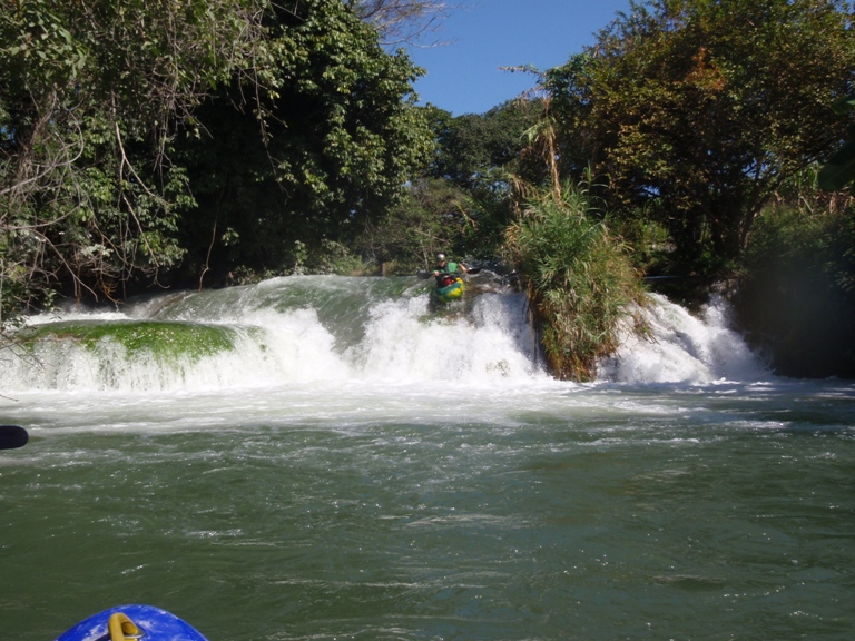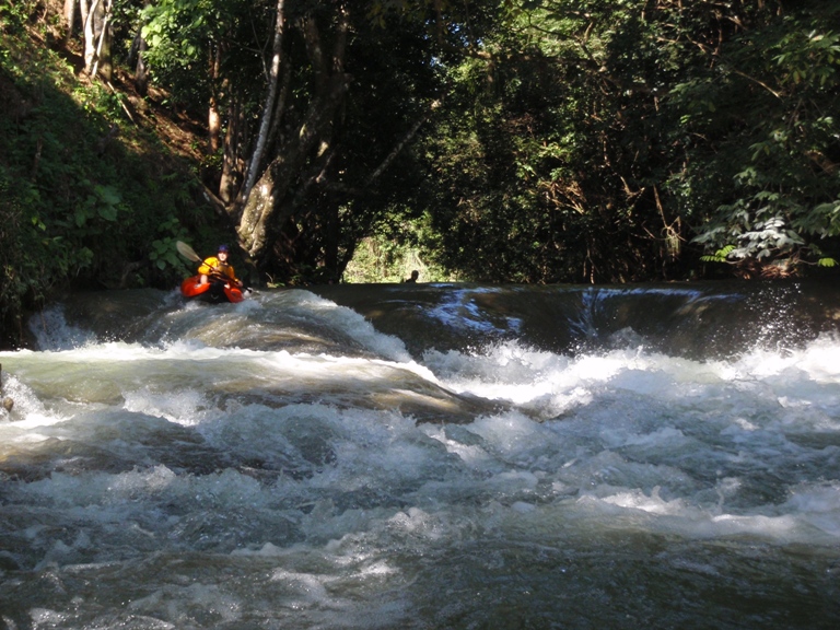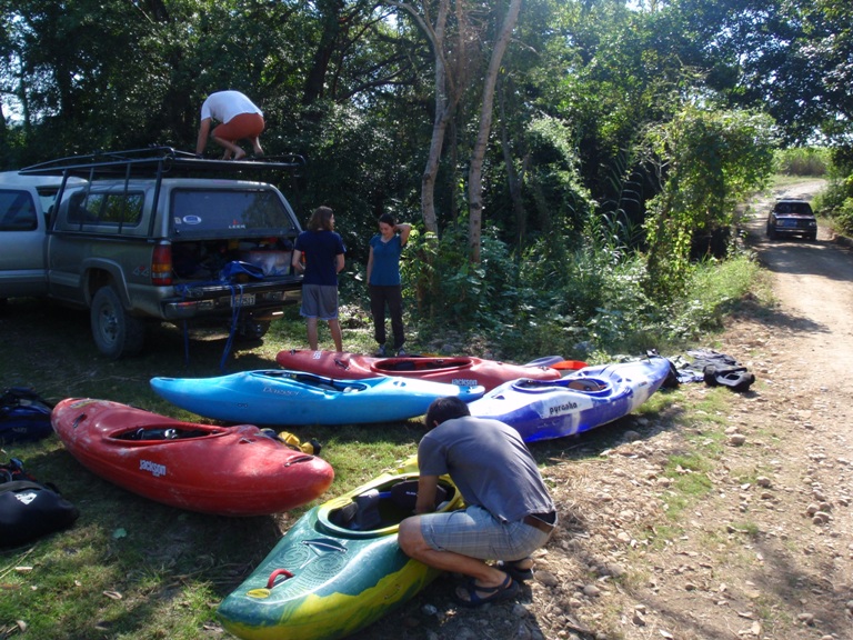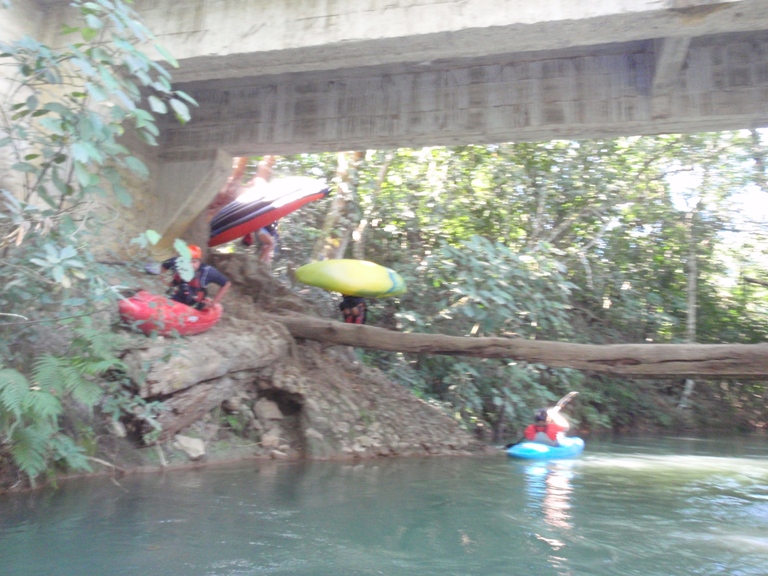 Take-out: From the Micos, head the Valles. Instead of turning right towards the Salto section, continue straight 2-3 miles. You will come to a small town, at the "Crucitas" sign cross the rail road tracks. Turn right immediately and continue back the direction you came for a few hundred yards until it bends left. Follow this left and go up and over the hill the few miles to Damian Carmona. When you enter Damian Carmona just keep heading downhill. You cross a nice paved road at which time your paved road turns to dirt, continue on the dirt it bends right and shortly leads to the bridge. We just kept asking for Damian Carmona to get to town, then asked for directions to the bridge and everyone pointed us along.