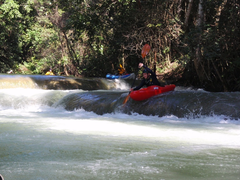 Now perhaps some people will think I am being unfair to the Ojo Frio. I have seen another websites photos and the water was emerald green. Furthermore those people like the feeling of being encapsulated among the trees. The viewed it as jungle growing all around. We however interpreted it as no more than an irrigation ditch. When the guide book says the nice shallow canyon, it means a 20 foot ditch with muddy banks line by agriculture fields. So with all the negative out of the way. I know other members of the group felt like I did, if it weren't for the utter lack of scenery and the gross water, the rapids would have been enough to make a nice day. There were over 100 small ledges and 2 or 3 larger rapids. I thought they were fun, but just not fun enough to overshadow the other points I have mentioned.