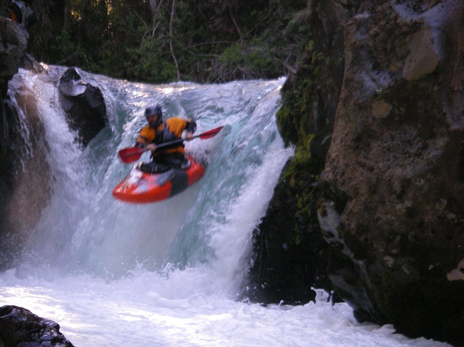 Final Falls (IV). The last drop we ran in Chile, this is one of the easiest and yet most fun drops in the area. Just slide down to the autoboof and sail through the air. So good.