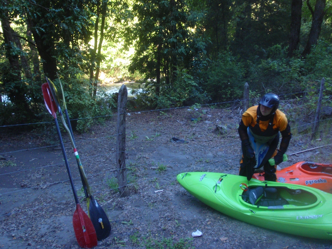 Put-in: Continue driving up the dirt road. Just before the road climbs up and away from the river there is a spot at which you are 100 feet of the river. We put-in here. There is a small bridge just downriver.