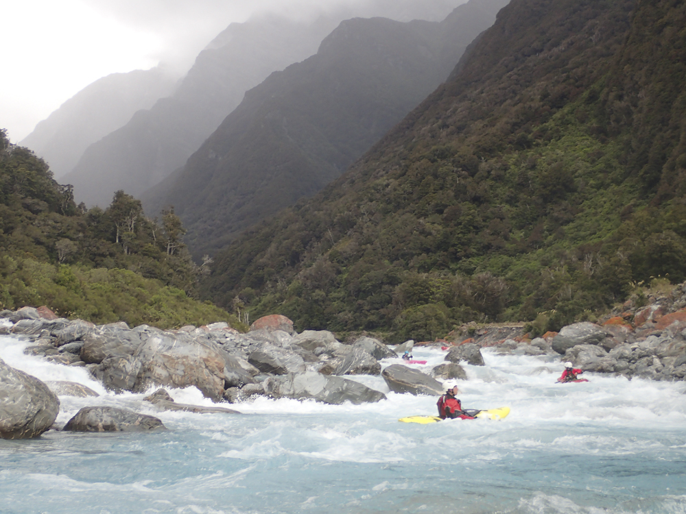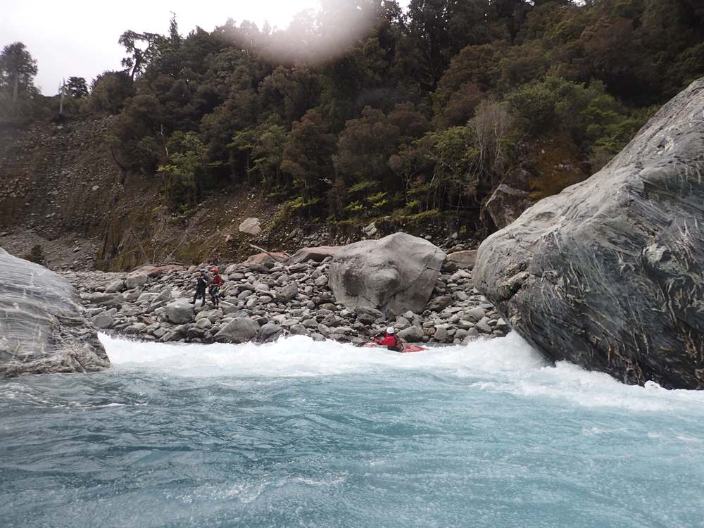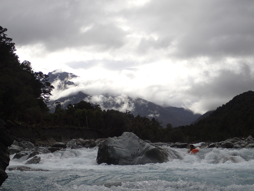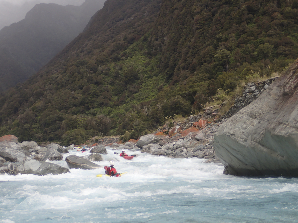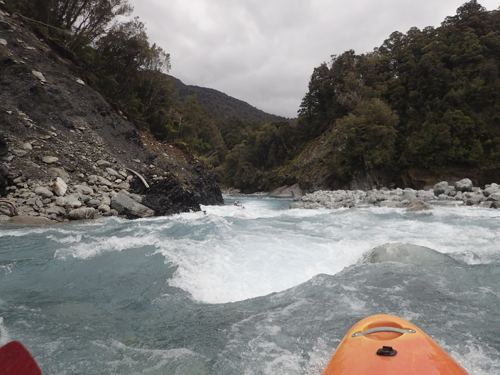 - Confluence with the Whataroa which enters on the left. Downstream there are a few fun fluffy wave trains but nothing that you need to stay on your toes for.