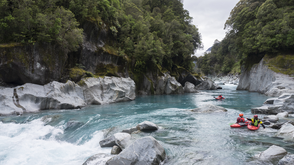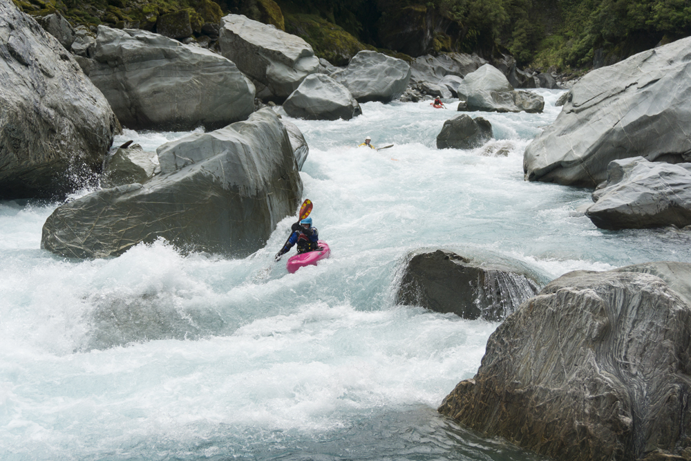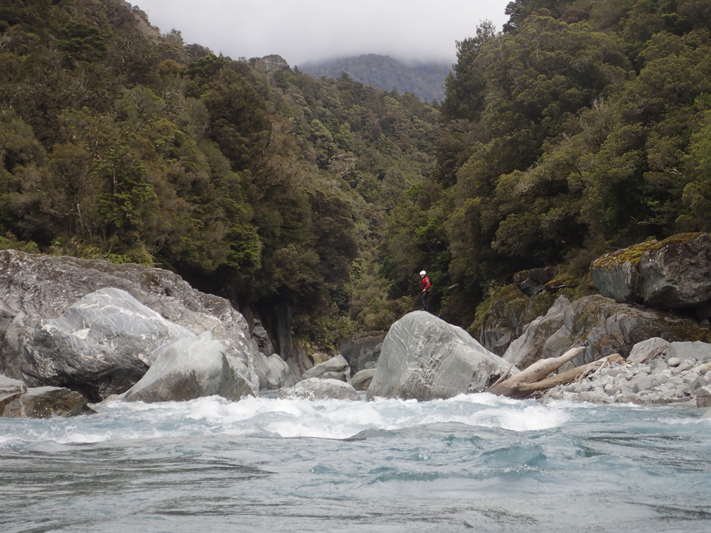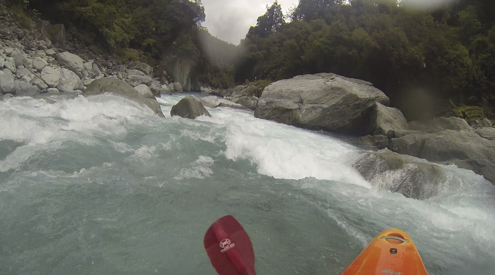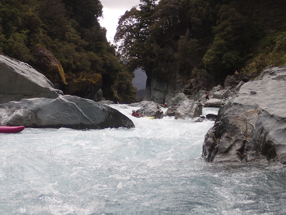 - Confluence with the Whataroa which enters on the left. Downstream there are a few fun fluffy wave trains but nothing that you need to stay on your toes for.
