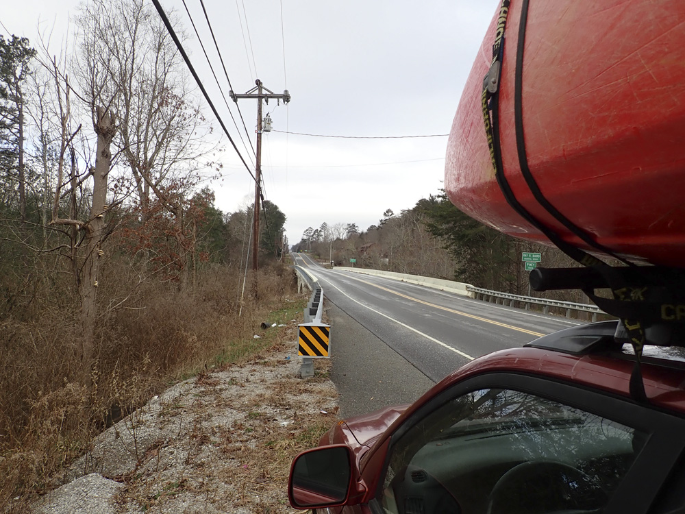 Put-in: Go back out to highway 27, you can either illegally try to turn left or go down to the right to turn around. We did the illegal turn. Follow US-27 north for 4.4 miles before turning left onto US-70. Continue on US-70 for 2.8 miles. We parked on the shoulder on the left, immediately before the bridge. We then walked down the upstream side's embankment which was easy enough.