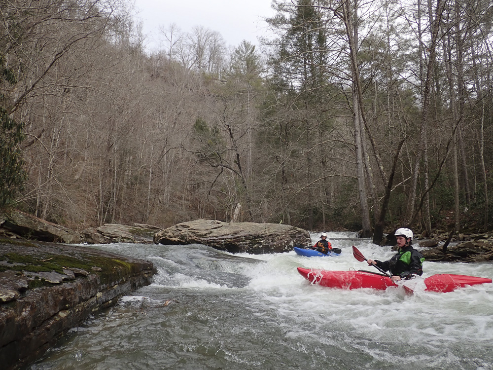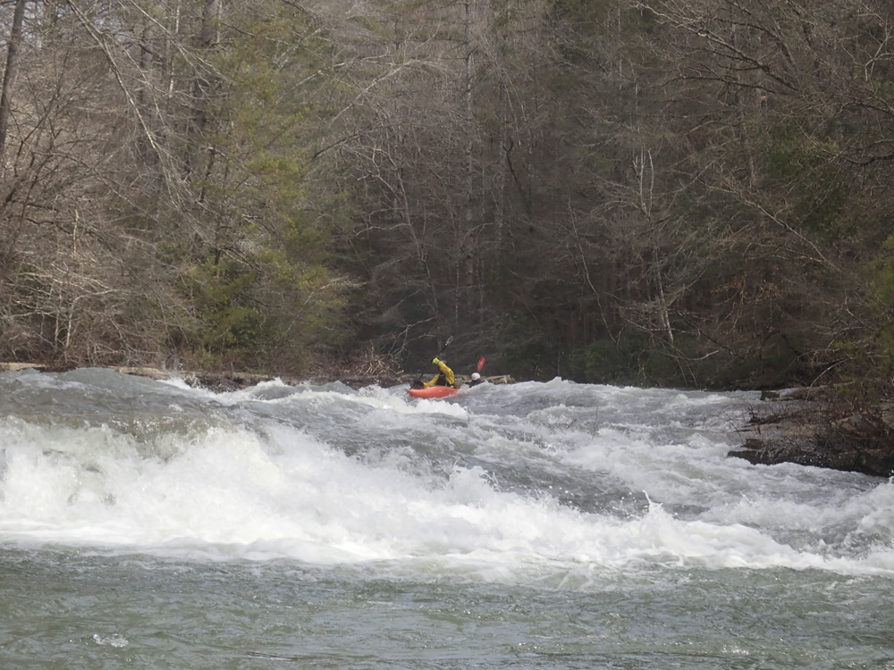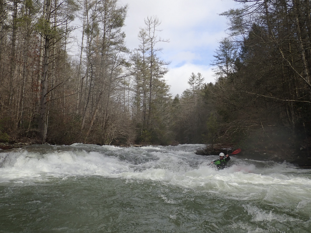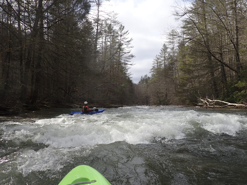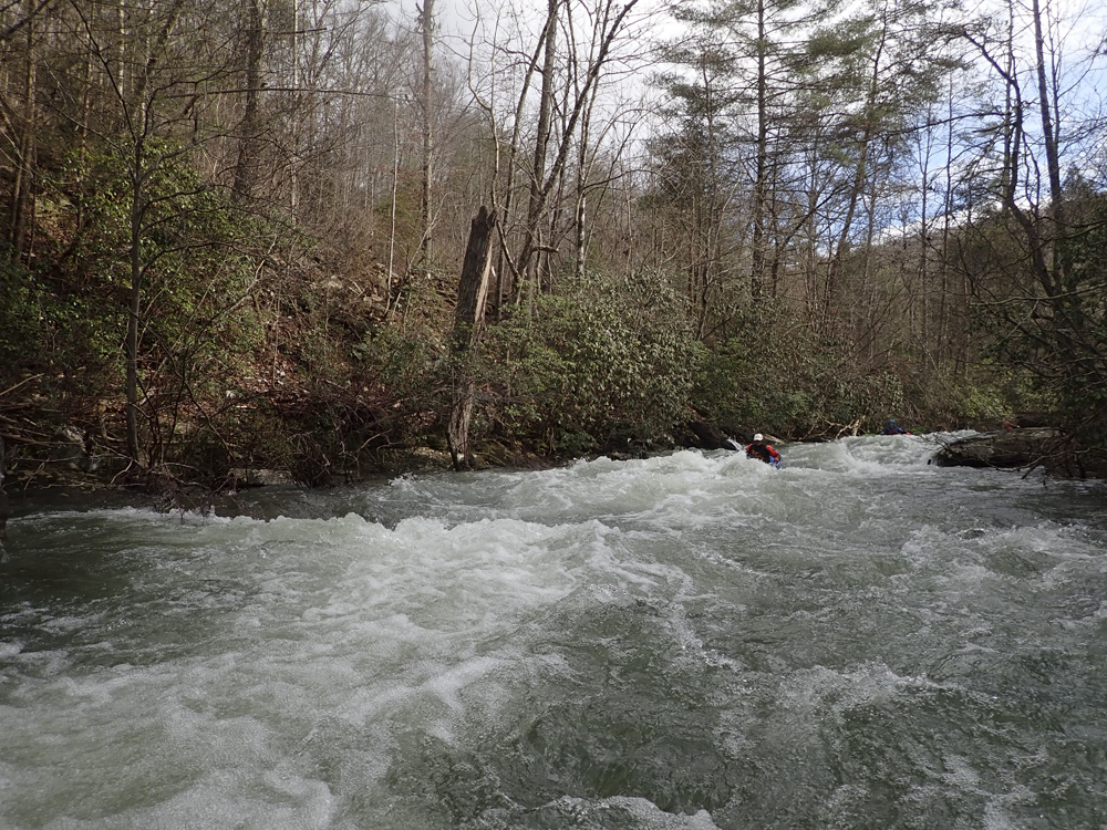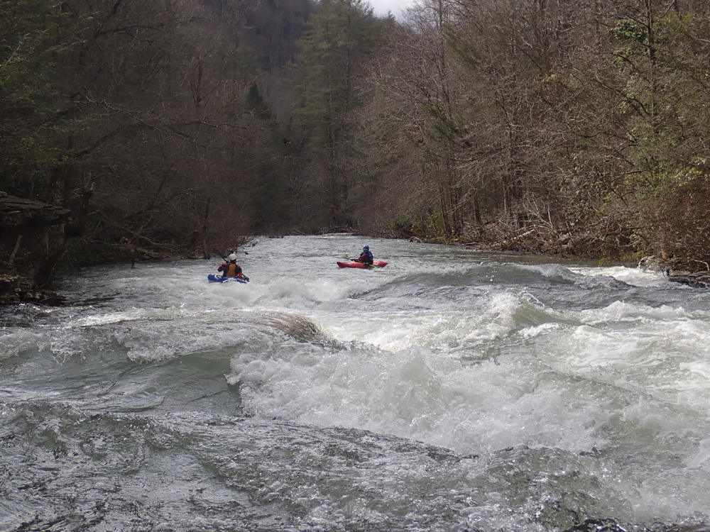 Below this, the river's pace backs off, though several small stair step slides keep you entertained before you get to Tiny Piney's grand finale, "Aircraft Carrier," which is a great long slide. Before long, Mammy's Creek enters quickly followed by Falls Creek. Surf waves become better in this section as the volume ramps up. Then you get to Whites Creek where the surf is fantastic in a few spots. After a mile on Whites the action peeters off to take-out.