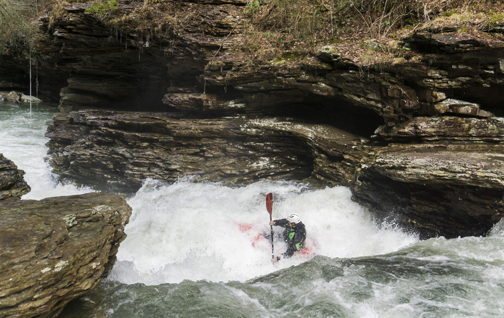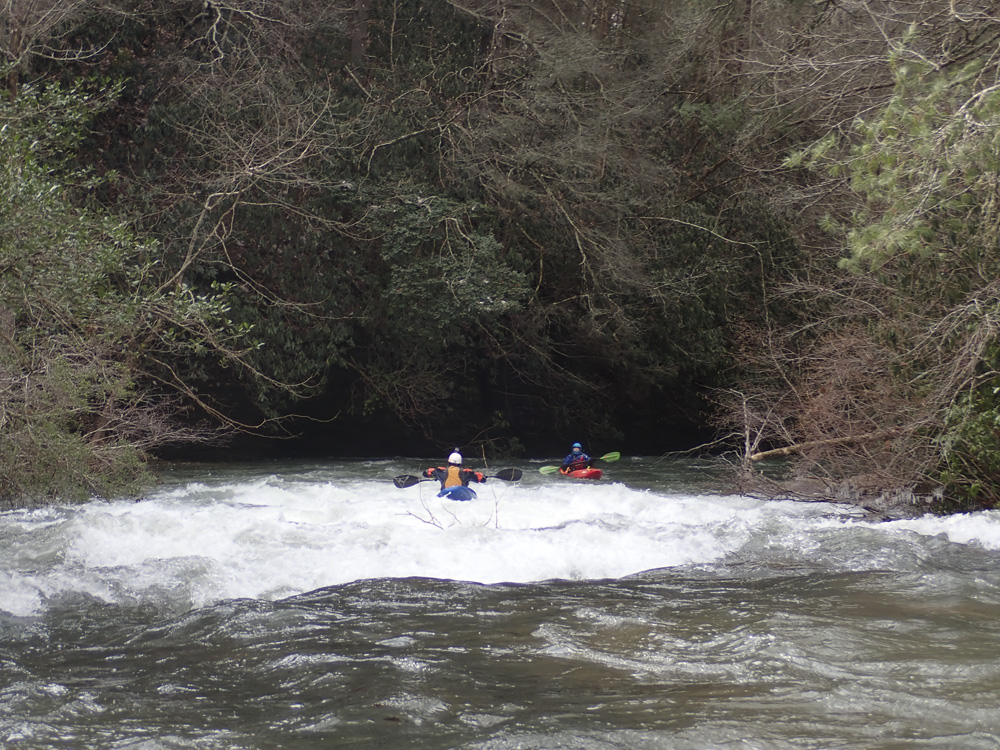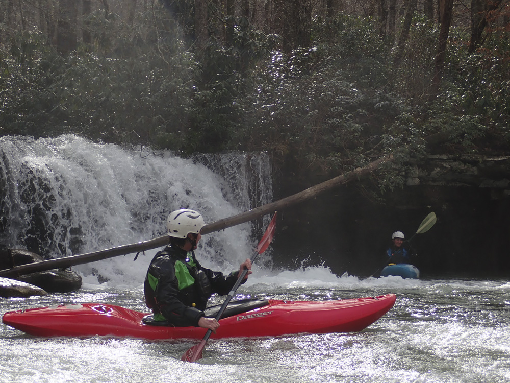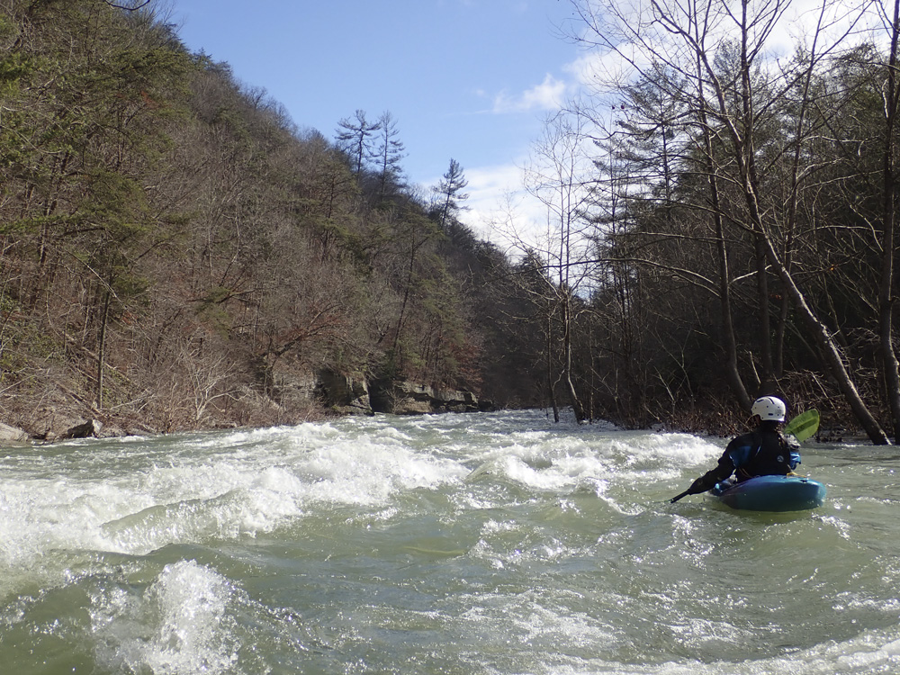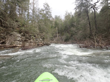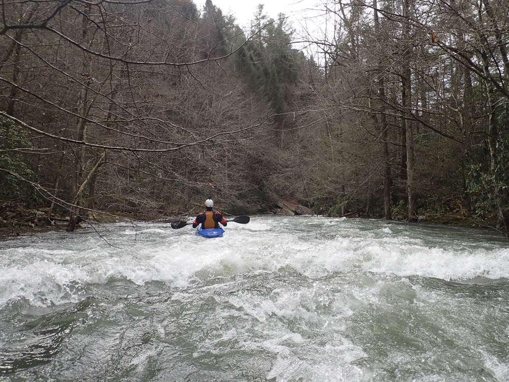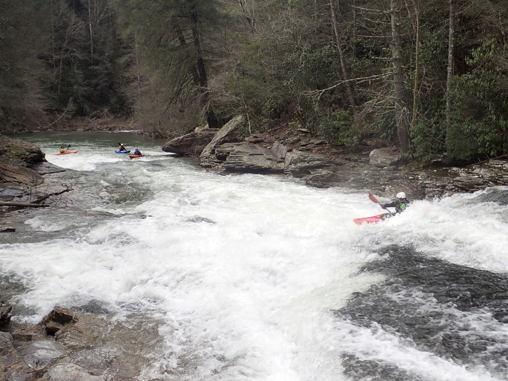 Below this, the river's pace backs off, though several small stair step slides keep you entertained before you get to Tiny Piney's grand finale, "Aircraft Carrier," which is a great long slide. Before long, Mammy's Creek enters quickly followed by Falls Creek. Surf waves become better in this section as the volume ramps up. Then you get to Whites Creek where the surf is fantastic in a few spots. After a mile on Whites the action peeters off to take-out.