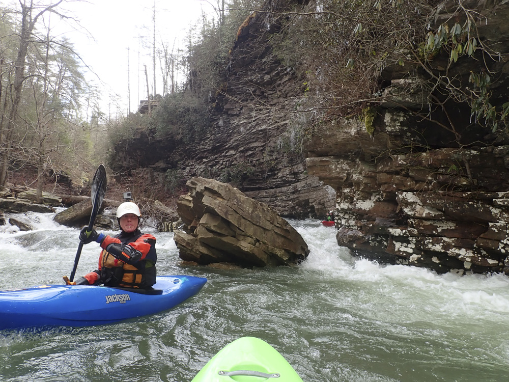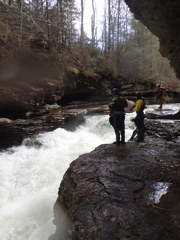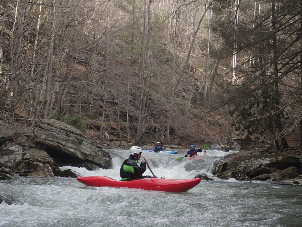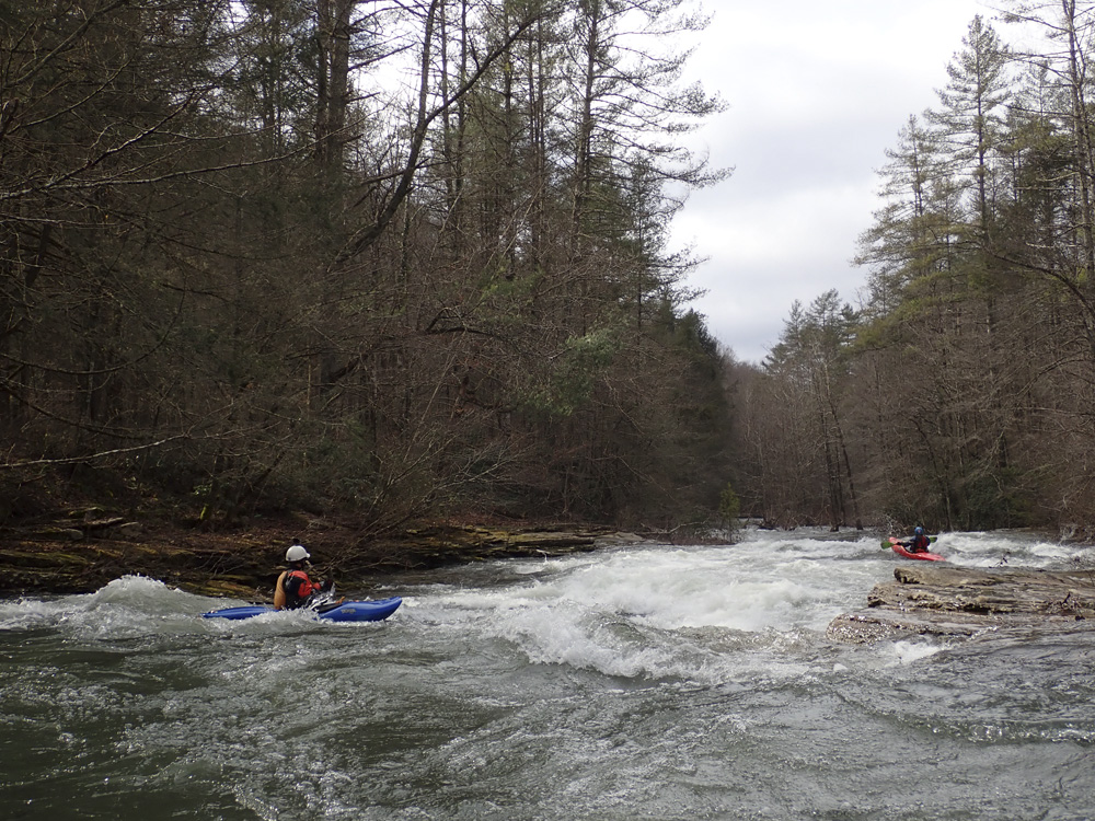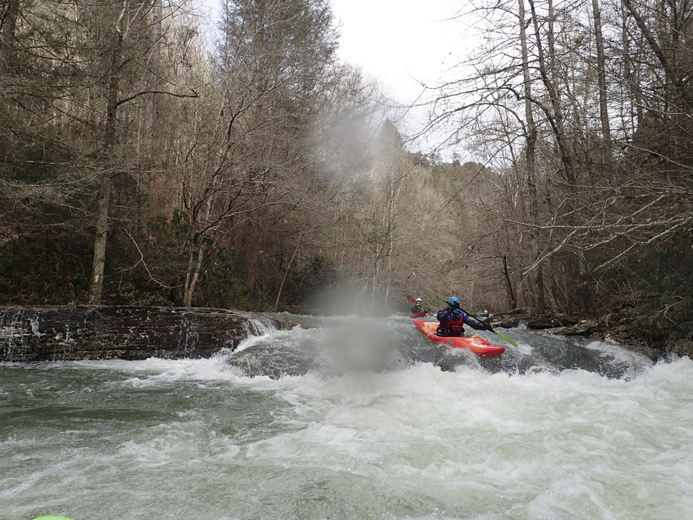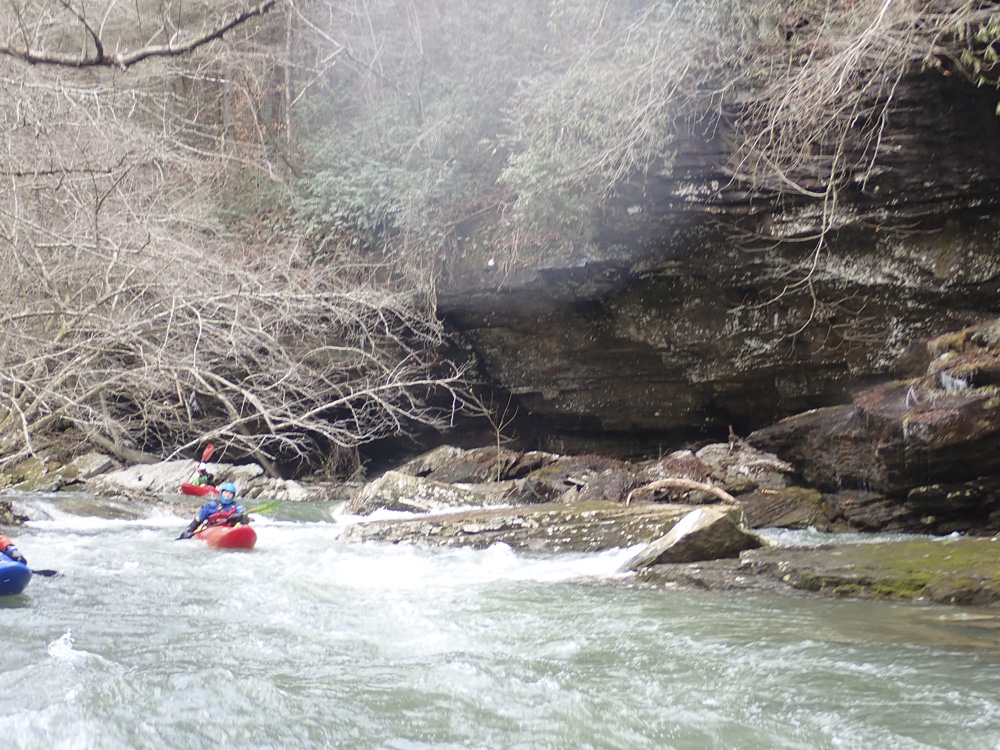 The day starts off quickly, no paddle in on this one. Around the first corner you get the first bedrock slide which drops off a powerful small ledge at the bottom, scouting is easy from the left, as is safety and portaging. Around the next corner, to the right, you get to the biggest rapid of the run. Locals have called this rapid Time Warp for years. Steve Scarborough, who lives near the confluence with Whites Creek relayed to me that the timezone change runs through this rapid. So, there is occasionally the funny outcome where you clobber the right wall, which then sends you left, where an hour later, you hit the left wall. Apparently sometime subsequent to that naming, people started calling it by "Baby Gorilla" or "Chimp." Really I am not sure why, it is nothing like Gorilla. Anyways, scout left and seal launch into the pool below if you aren't feeling threading the needle through the entrance drop to avoid getting stuffed hard into the left undercut.