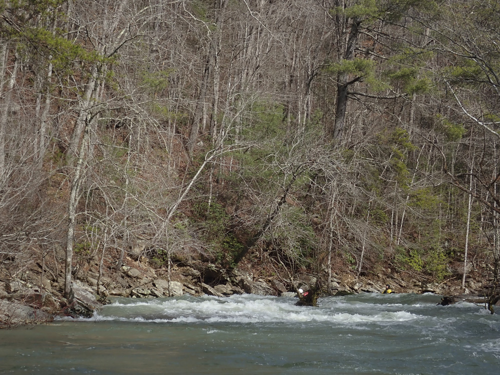 Downstream, you are greeted with entertaining rapids, mind the undercut left wall in the exit of Time Warp. About a half mile downstream is a boulder garden that looks like you want to go to the right with 75% of the flow, however this ends in a sieve which has caused numerous near-death experiences. Instead, go to the left of the rock pile island. If you have in your mind "when in doubt, go left" then you should be able to figure it out, it hit me as pretty obvious when I was above it, with that information, even though the sieve was over a blind horizon.