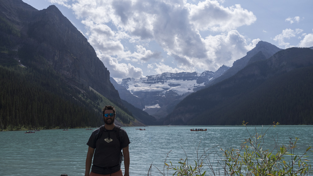 After the run, since we were in the area, we decided to go check out the iconic Lake Louise proper. Parking here fills up early, but at this point it was late afternoon, and we hoped that parking may be opening up and were right. So we spent an hour walking around with the hoards of people. I have to say, it was pretty... but, if you are willing to hike, there are a dozen other easily accessible lakes that are similar and much less crowded.