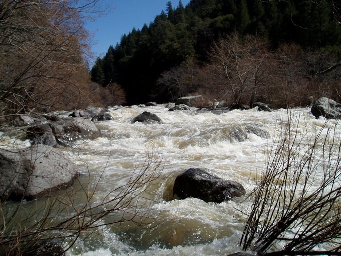 Alternate route: You can also come in from the other direction, if you are going to do Pitt 3 one day, or if you live on the eastern side of 299, this would be the better bet. I estimated it took us 30 minutes longer to get home though driving out this way then it took us to get in. So anyways, continue on 299 out of Redding until you get to Highway89. Head North for about 4 miles until you get to Clark Creek Road. This drive is very pleasant, completely forested and paved. After 4 or 5 miles you will cross the dam. Continue until you get to the 3 way intersection. Head sharp left (uphill and back). This road turns to dirt and after 8 or 9 miles will lead you to the Pitt 4 dam. You can continue down this road to get to the Pitt 5 reach as well as it is the same road connecting all the runs.