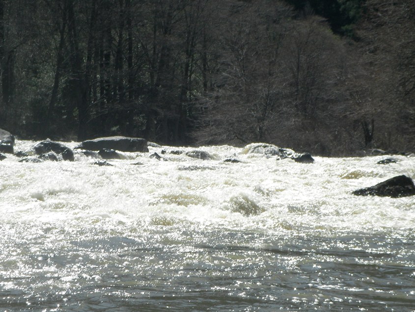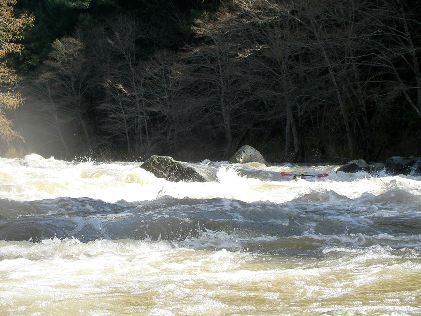 - Rocky (IV to IV+). I am sure there were easier lines down this one, however we were all just floating, then noticed a large rapid approaching and no eddies to catch to look down from. We ran down the middle which involved running a small crack with a rock to one side and a rock backing the hole. With our line this rapid was probably the most difficult on the run. I saw an easier line on the right side and someone else said they saw an easier line on the far left side.