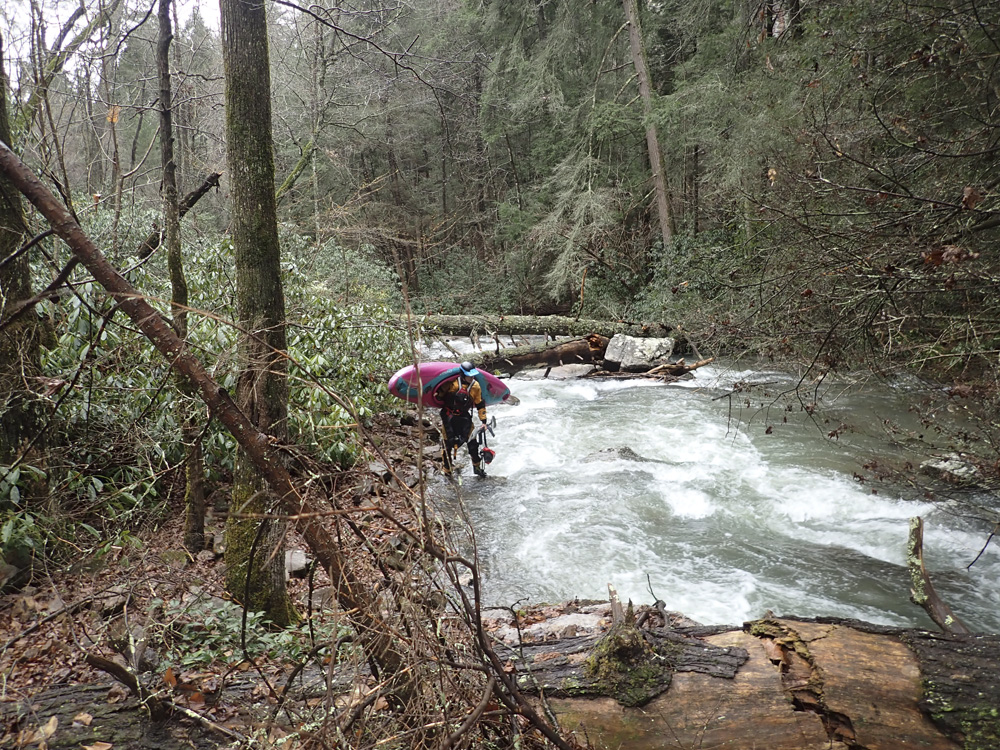 Out of Pocket (V to P). This is most commonly portaged on the left. It sorta sucks to walk, you have to go high on the ridge line and then drop down steeply a short ways below. Portage early when you get to the huge boulders that form this rapid. There is a line through though it involves boofing into a seam and melting it over a drop into a good size hole. For us though, there was wood. So, it was a non-option regardless.