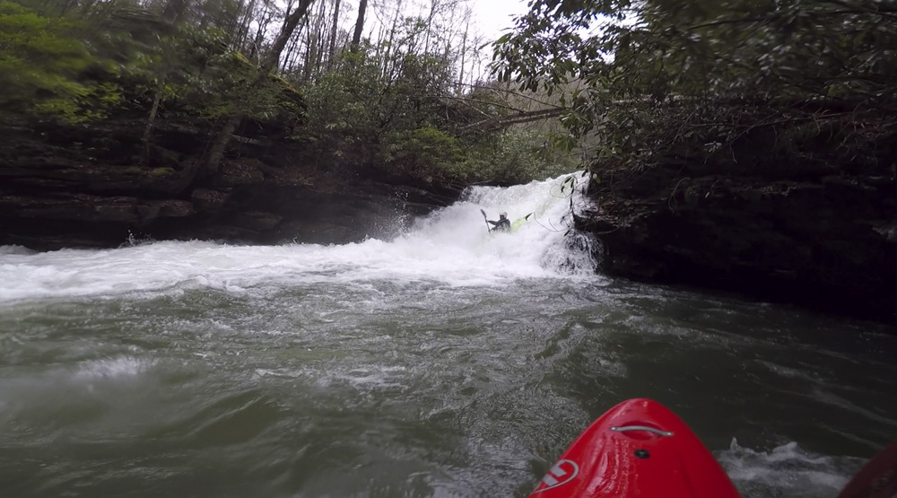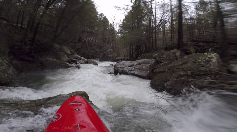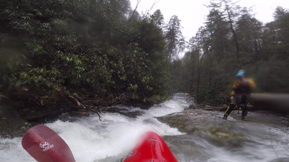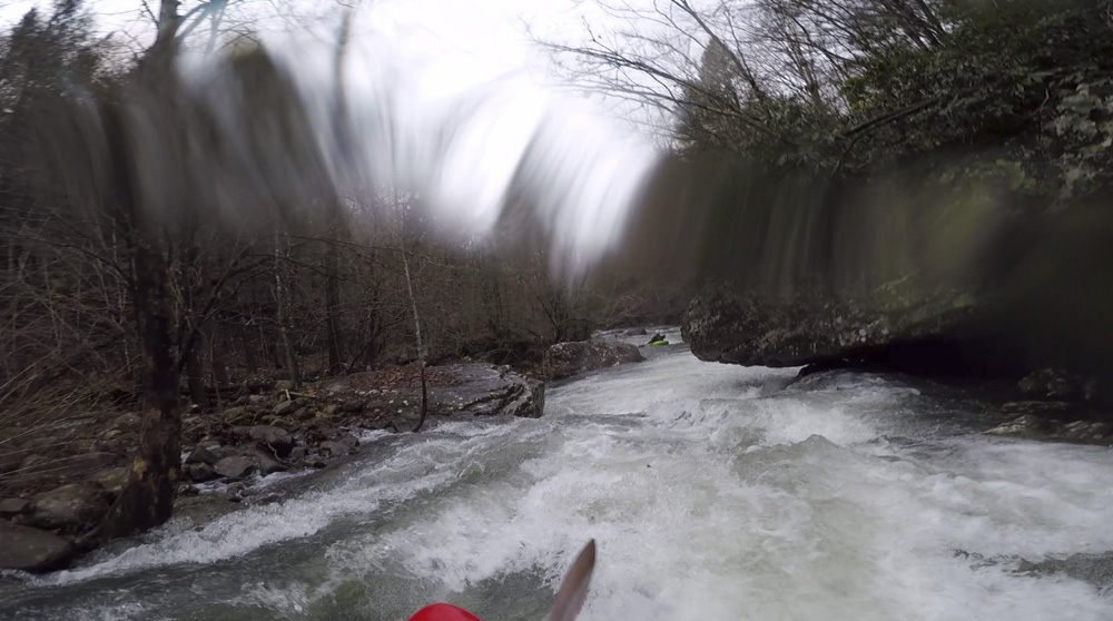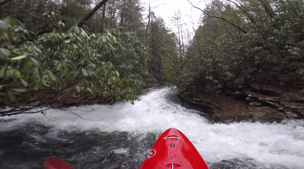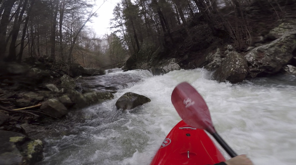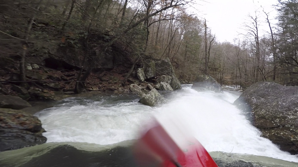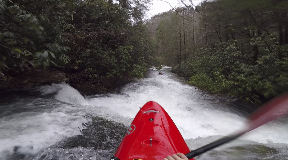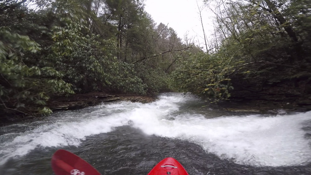 Upper Pocket Pussy (IV to IV+). Scout right. This one has a boof on the right that you want to run with a little left angle. This will help you clear the undercut jutting out on the right in the pinch exit immediately below. I imagine as flows rise, and this small pool before the exit backs up, this one gets some teeth.
