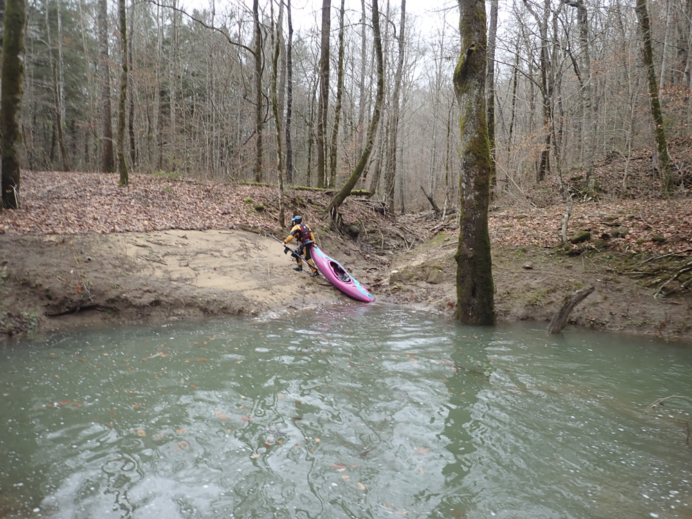 There are two options to take-out. The common option is to hike out after the rapids, some 700 ft elevation in about a mile, and then depending on the 4x4 capability of your car, potentially another 0.8 miles to the pavement. Using Diane's pregnancy as a great excuse again, we decided that her carrying her boat that far would exceed the strenuous level of activity that she has been told to avoid. So we looked at plan B. Plan B is to continue paddling, apparently a lot of water disappears into a sink, and there are forests of trees to dodge, as you paddle out 4-6 miles on the Little Sequatchie River, but to Diane and I, that still seemed favorable. Luckily, Jim and Caleb were both also ok with that plan. And as luck would have it, one of the family members who live on the farm at take out was walking around, and was super nice and welcoming. This was good because the access is tucked on the far side of their farm, though I think it is a public road, having the local family be cool is certainly nice... so future kayakers, be considerate and don't ruin that! Also, while you are at it, buy some of their fine cheese (Sequatchie Cove Creamery) at a store near you!