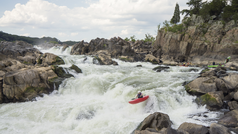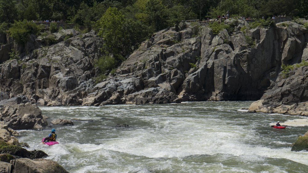 Put-in: From DC, take the George Washington Memorial Parkway to Us-495. Cross the Potomac on US495 and immediately exit to take Clara Barton Parkway and head upriver. This quickly T's with MacArthur Blvd, turn left and continue heading up river. In 3.4 miles you will get to the park entrance. It is ~$30 for a year pass for the park, or ~$10. Park, and walk down to the canal water. Cross the canal and get out using the stones on the far side (to limit erosion). Then head on the small trail down to the river just through the woods. Put on here.