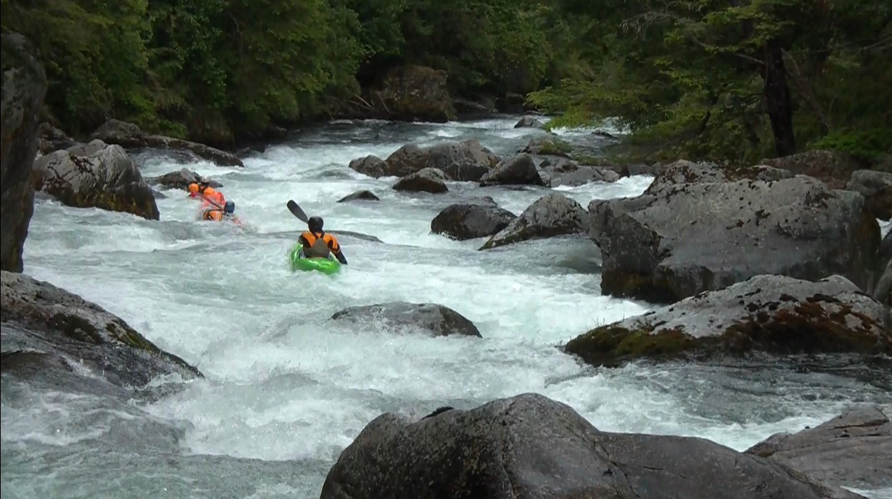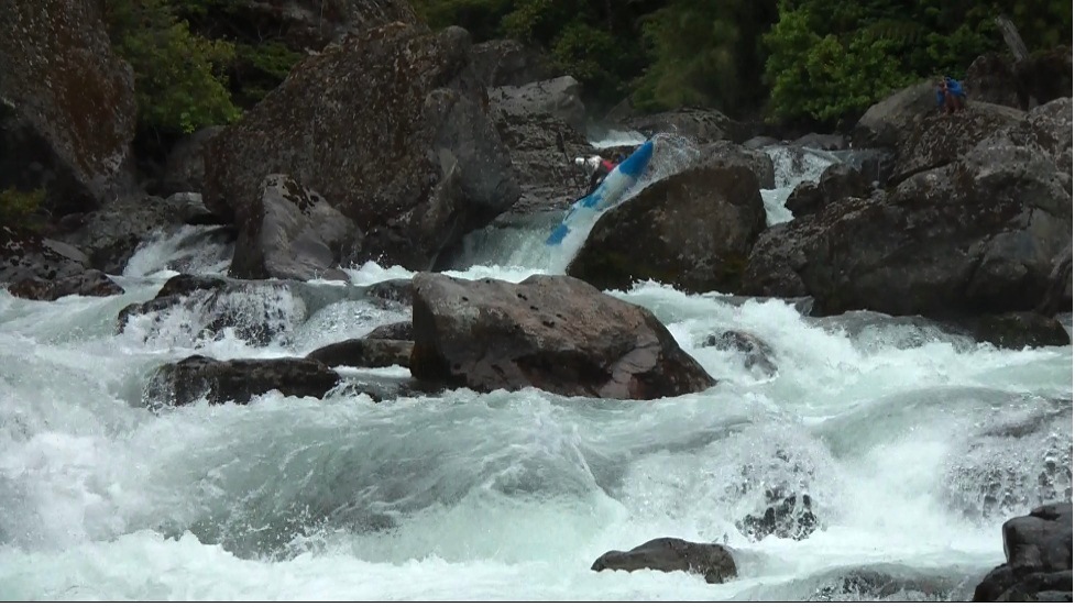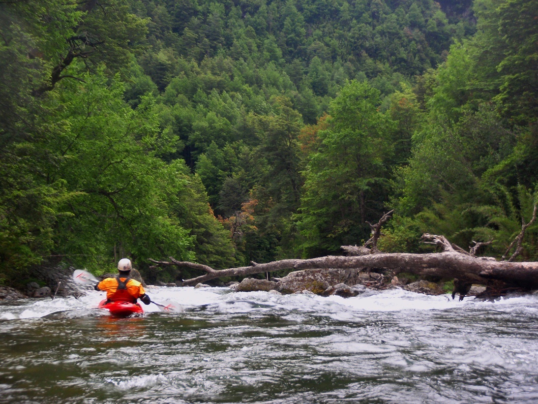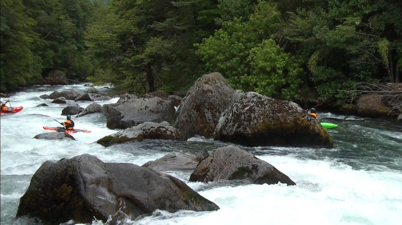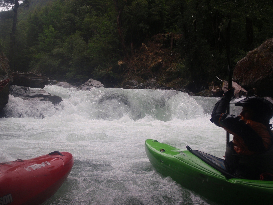 Along with the Rio Maichin, the Rio Puesco forms the headwaters of the of the Rio Trancura. Lots of footage has been filmed of groups running the crux section of the run, the Tres Troncos rapid named after the three trees that block the river right channel at the bottom. The reason for the quantity of films isn't because the rapid is easy to scout or portage at river level, but because many folks choose to put in below the rapid, and from the dirt road that leads to the base of the rapid, those not inclined to run the rapid can film. This was the case for our group as well. None of us decided we wanted to push it on this particular day but the Demshitz crew were putting on at the same time and of course they did want it.
