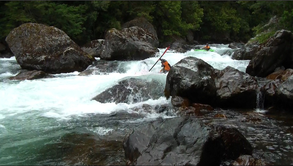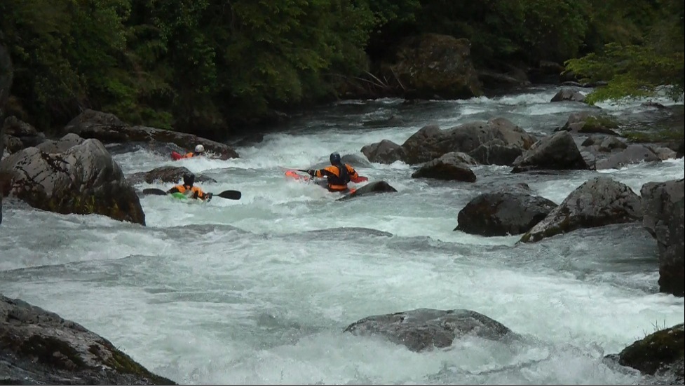 First Section (IV+). We had low side water, which made the river continuous class IV moves though that made it feel harder than class IV as it was non-stop class IV. At higher flows this could all get upped a step I would imagine. The first section started with a cool boof just below Tres Troncos and then had a long runout down to the biggest lull of the run.