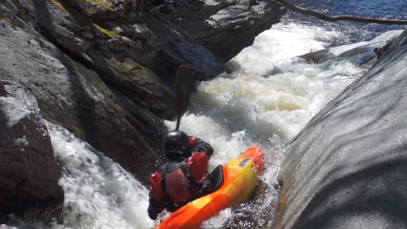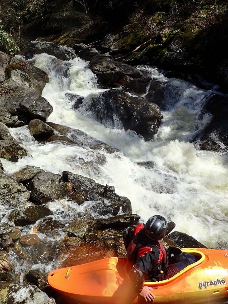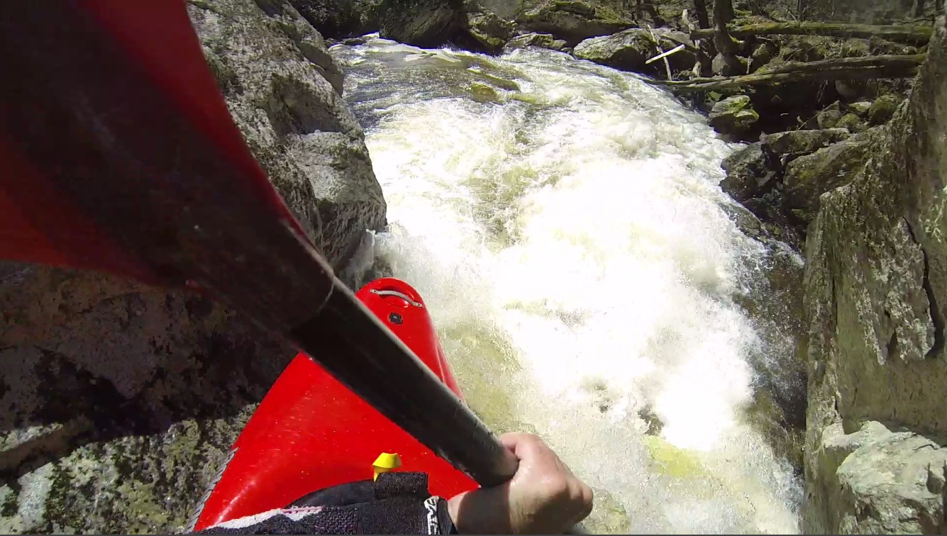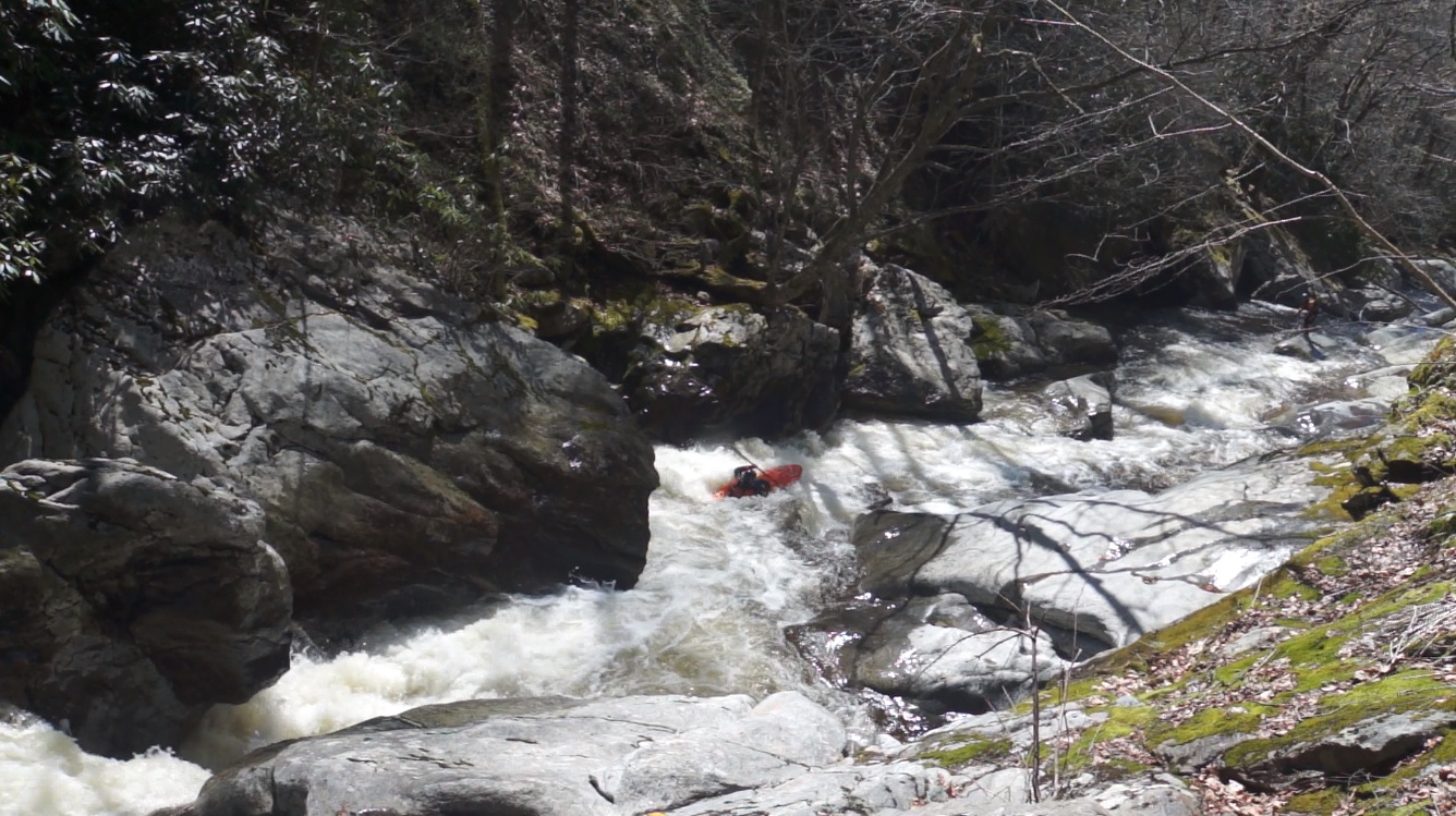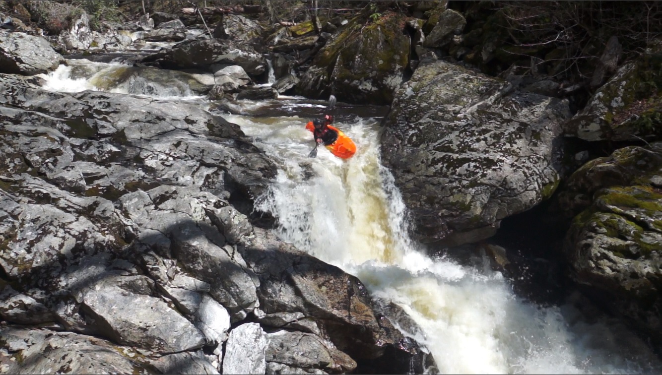Mortal Combat (V to V+). It is starting to get steep! Eddy out on the right to scout from above and potentially portage the spout. The old entrance on river left is full of wood now and the new entrance requires enough water to soften the landing. If the water is ~10" or higher you can boof the left side of the right channel for a fun 8-10' boof. Others choose to portage on the right and put in at an eddy just below. Below the spout, the river starts sliding, start left of center. This slides into a fold and then up and over a hump... you want to be on top of (erroring left) of the big hump. Below, the river slides and hits a small hole with momentary deep water to grab to pull yourself as far right as you can get. There are two small fans of water, you want to go between the two erroring to going over the top of the right fan. This will set you up for the final slide and lands you clear you of the hole. If for some reason you get pushed far left on the final slide it finishes by landing in crack that then lands you in an undercut and bad backed up hole. Lots of swims happen by that error.