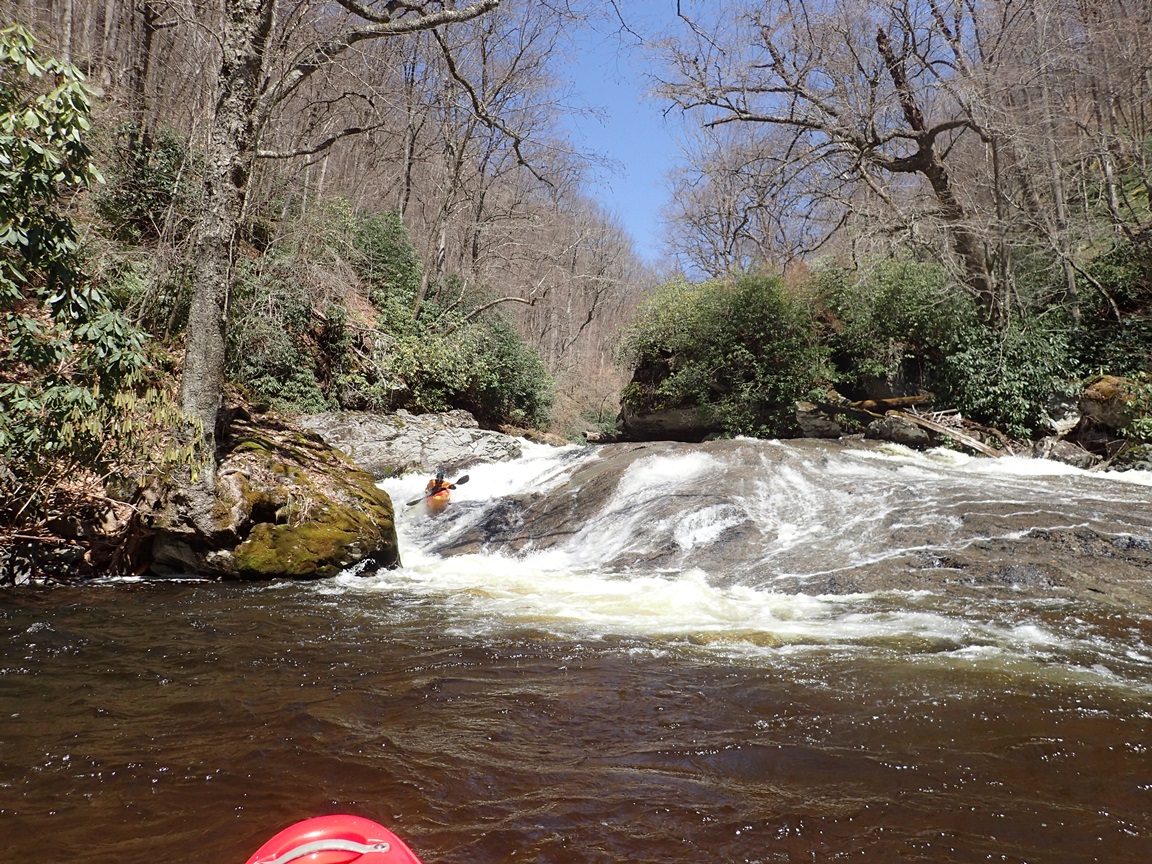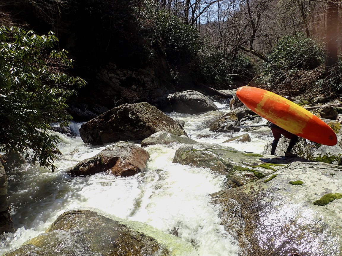 If you want to aim for a more secluded feel, a good rule of thumb is to be at take-out by 10 am. Many of the hordes are coming from Asheville... and not to stereotype a city, but a lot of the boaters located there are not the early rising type. Our day we had 60 degree weather after a very cold winter, blue bird sky, perfect 10" flow, and we didn't see anyone on the river... though ~25 people were behind us we found out at take-out. This allowed for us to appreciate the gorge in our own way, and be assured that some of the small eddies were going to be empty as we approached. Not knocking the large groups that roll in, I am just saying I prefer a more internal and isolated experience on the river most days.