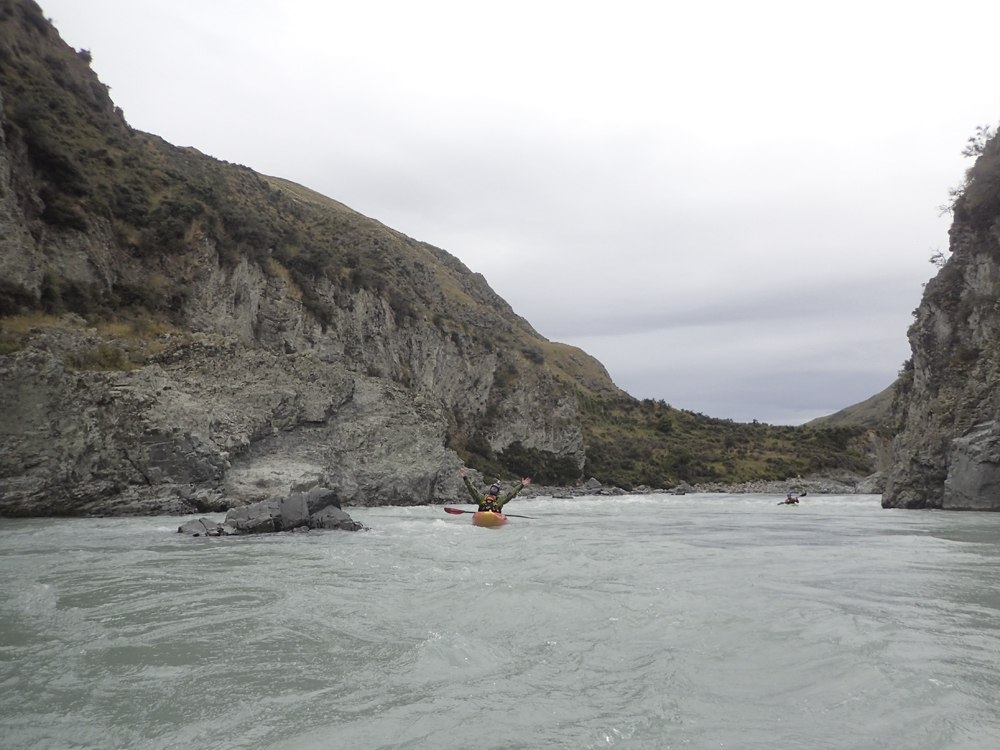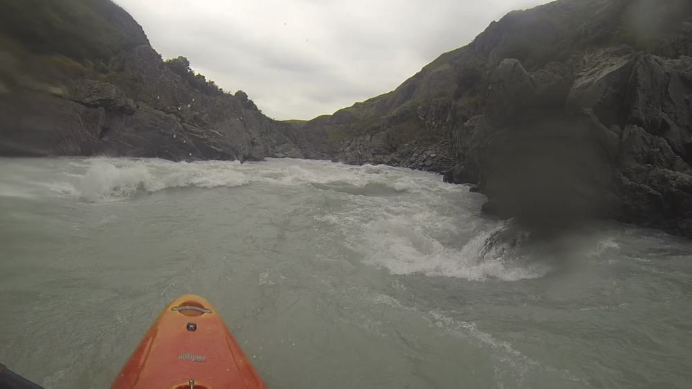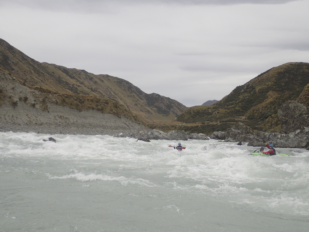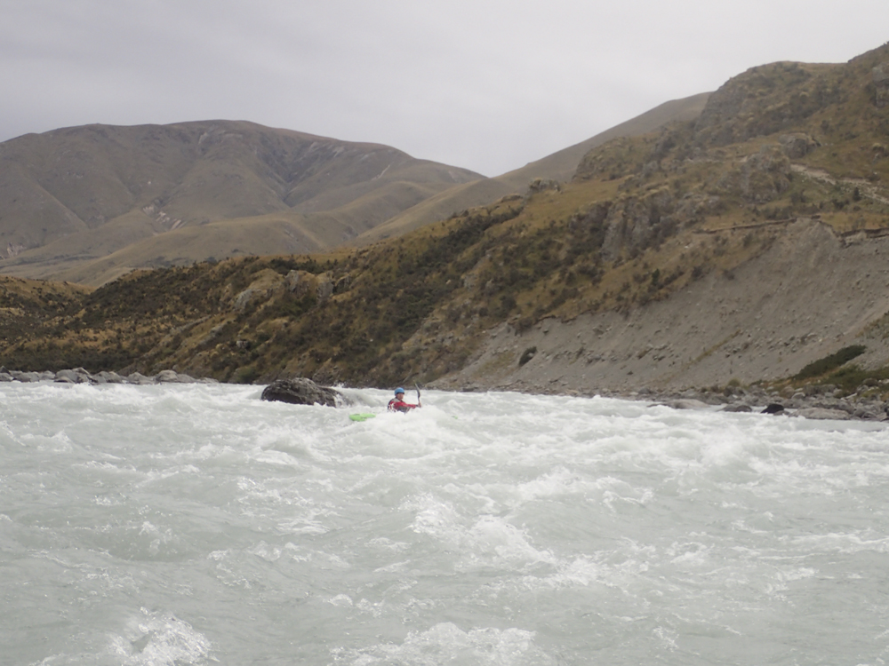 The run starts off with some flat water in a wide valley that is quite scenic before the river is constricted between walls and the rapids start. The rapids are brief, contained in the straight away as the river bends southerly from its eastern track. This river is runnable all a wide range of flows, ranging from 40 to ~300 cumecs. The holes are apparently stickier lower, but the river would likely be a roller coaster of action at the higher flows. As it was, we had 93 cumecs (3,284 cfs) which felt like plenty. We were able to catch eddies to scout, and the eddies weren't too surgy, and the holes were flushing well enough. I can only imagine at double the flow it is a different beast!