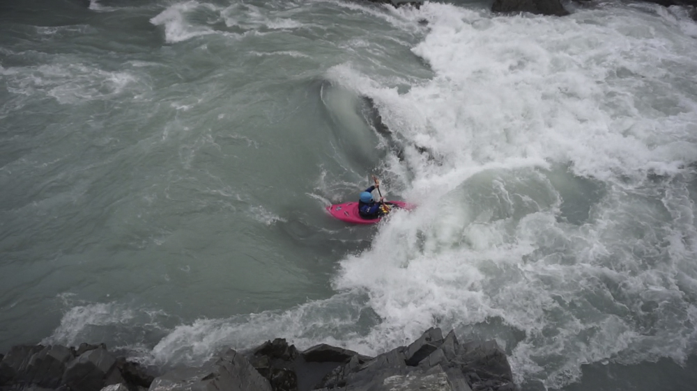 The Pinch (IV- to IV). The next section was a long busy read and run section that could spell disaster if you were to flip and not hit your roll. OK, maybe not disaster, but at our flow there was no recovery time in here before Hell's Gate. In fact it took some control just to catch an eddy. And then an aggressive ferry to a small eddy to scout the bottom rapid below from the right. The rapid itself was ok, just follow the water to the right and back left.
