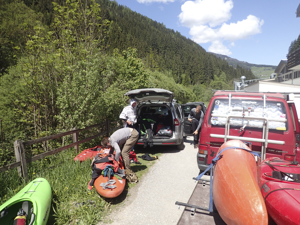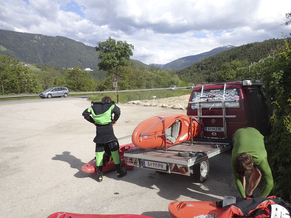 Take-out: We came from the direction of Bruneck and ran into all sorts of issues finding take-out. But I think that was a GPS error... What you should do is head East on SS49 and then a ~29 km outside of town take SS12 south. Continue for about 8 km to where the SS12 turns into Via Brennero. Follow this shortly down along the river. The river then bends right and changes names to Via Peter Mayr and then quickl bends left and changes names to Via Dante. Continue straight for about one km before turning right on Viale Mozart. Take this across the river and then take the first left onto Via Plose. This then goes back up the river, park at the end of the road.