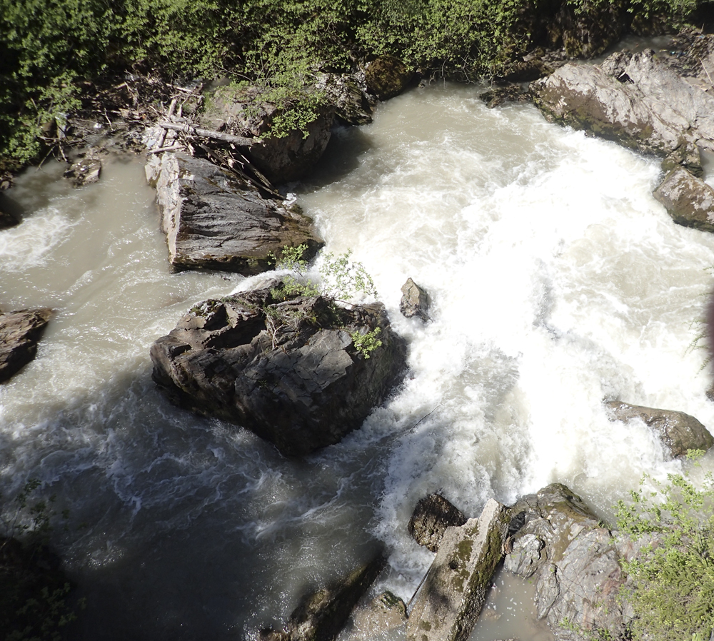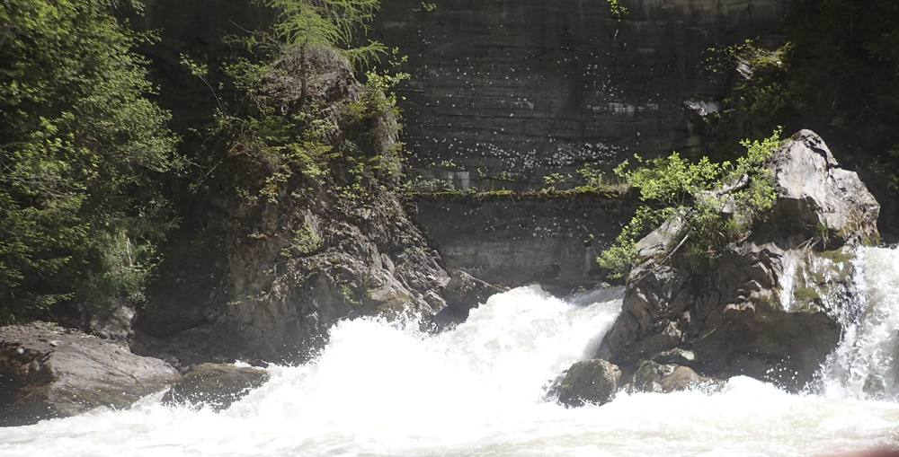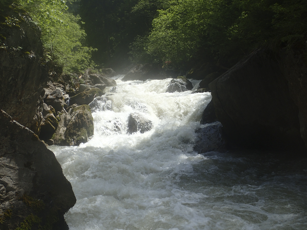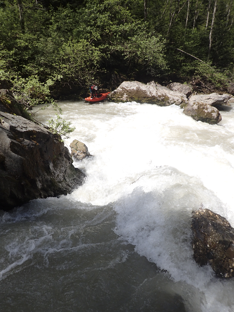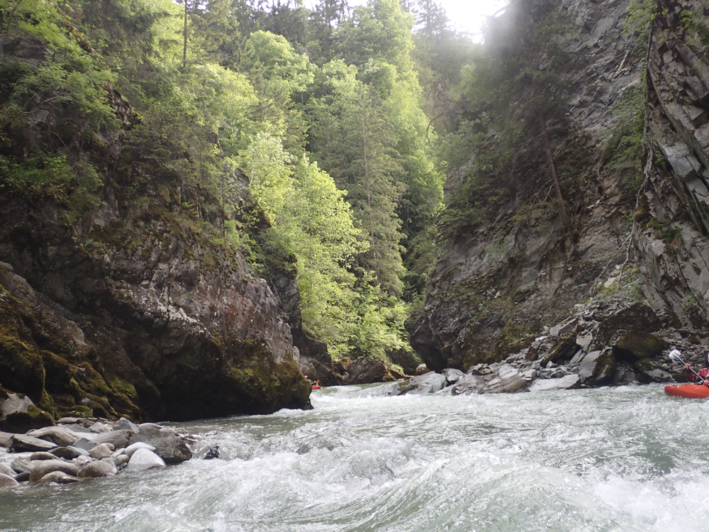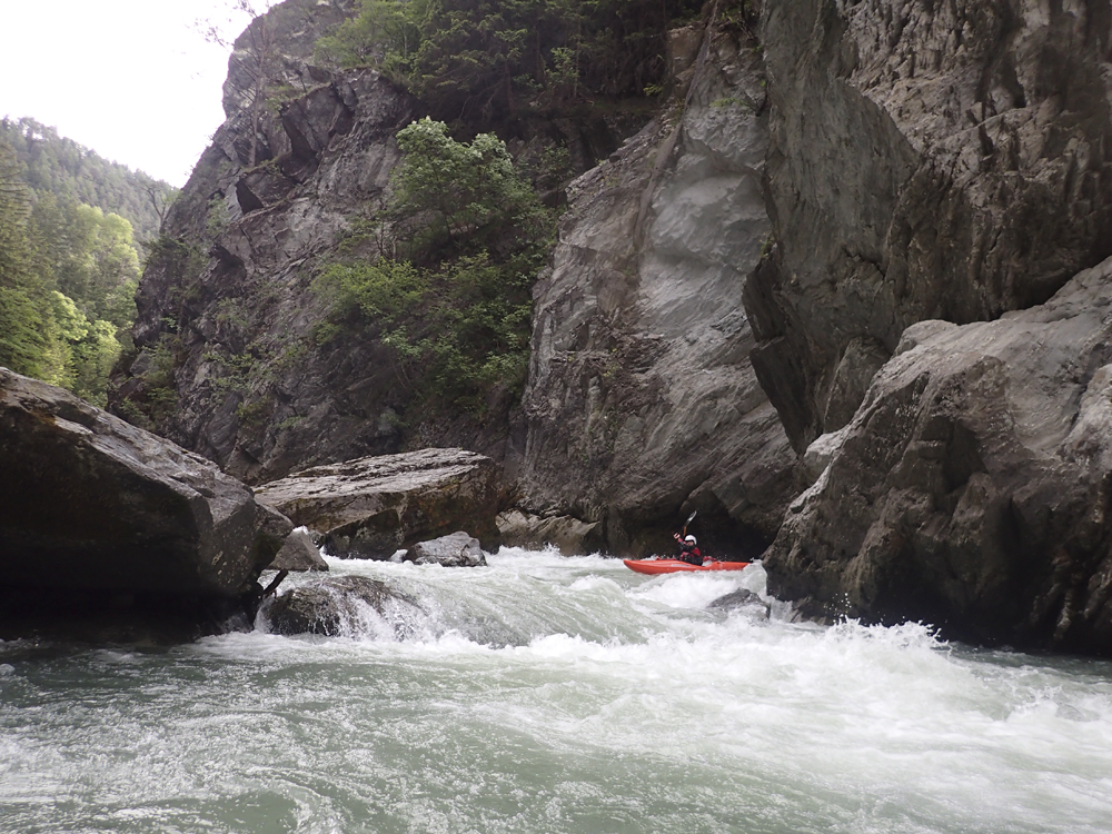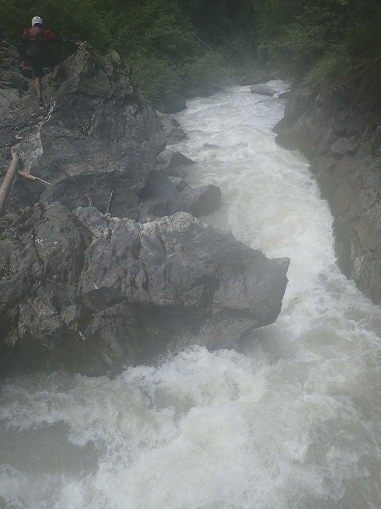 - Gorge Entrance (III). As you enter an obviously more walled out section you will also spot a bridge overhead. This is the start of the crux section which will last a little over a mile. This first rapid we ran down the middle.