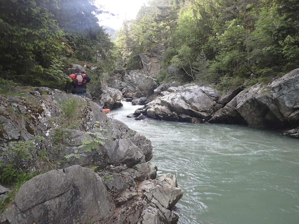 After their run on the Gader, we packed up and headed over for one last run in Italy before heading back to Austria. The Rienz was reported to have water, and supposedly fun. After some struggling to find take-out, and then struggling to find the put-in trail, we found ourselves at the river ready to put-on at around 5:30 for a long run. It turns out just upstream from our put in is the short class V section... Jim was tempted to scout it for a run, but with daylight and my unknown back status, we all decided to put on and make downstream progress.