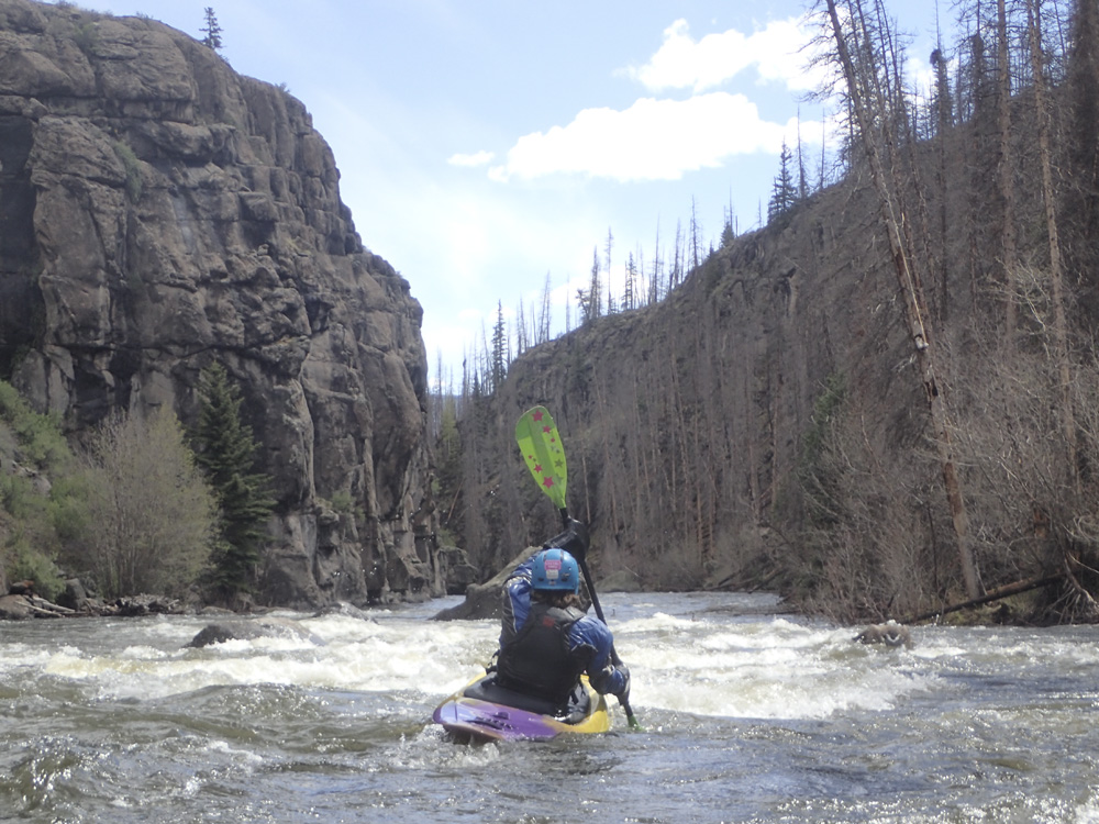 - Upper Canyon (III to IV-). Woohoo! Sustained rapids! We had just begun to doubt that the run was going to have any. Large boulders block the view of the straight away, just follow the flow and eddy out behind them to get a lay of the land. The entire straight away is one long rapid but is straight forward read and run. Just move around the rocks and small holes as need me. I bet at higher flow this section gets busier into the IV- range.