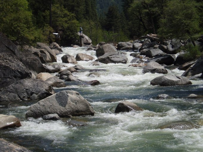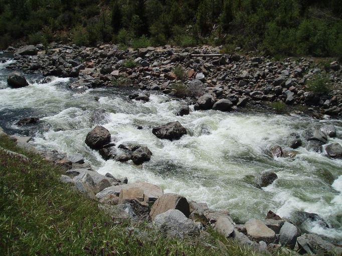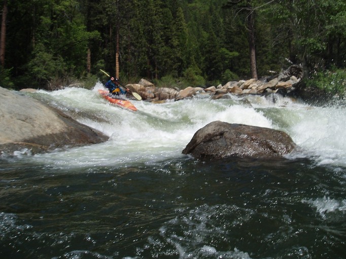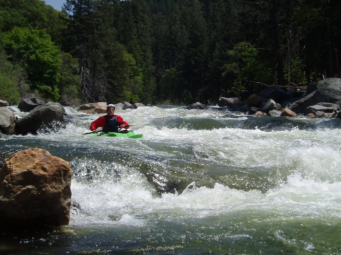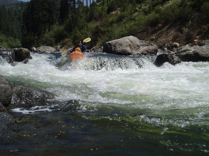 Update 2014: OK OK, so I originally wrote this some 9 or 10 years ago. At the time, it was one of the first continuous rivers I have done, perhaps that is why I thought it was so hard as well as so fun. However now that I have a bit more experience I figure it is time for a large overhaul... for the first time essentially deleting my old write-up. The run is great, it is a go to run for Sacramento folks during warm rains and snowmelt... but certainly it is not one of the very best runs around. Good and dependable though, yes. There are various put-ins and take-outs for those wishing to only lap hard sections or two take the teeth out and make it easier. At its easiest, it is class III with a few IVs, at it hardest it is back to back class IV. Also, I now know personally that at flows in the 2000s and 3000s are great fun. Most of it is straight forward with an occasional large hole to avoid. Swimming of course is not an option at those flows.