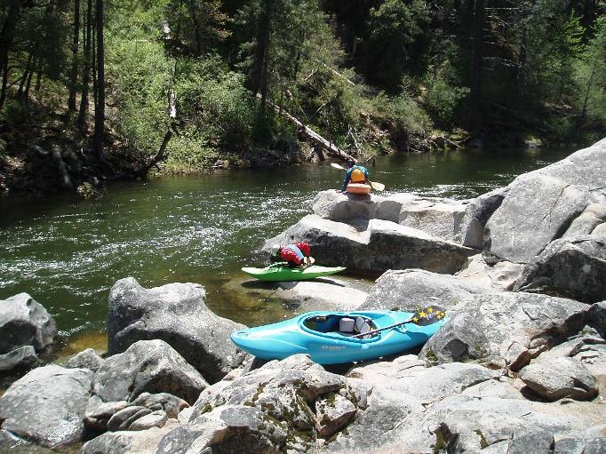 - Ledges (IV to V-). This rapid looks a whole lot worse than it is. The first part can be run on the left. Then boof the slab rock in the middle, boof the hole on the left, and then exit on the left. There is a boof at the bottom on the left if you want it that is great fun.