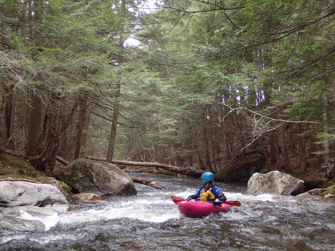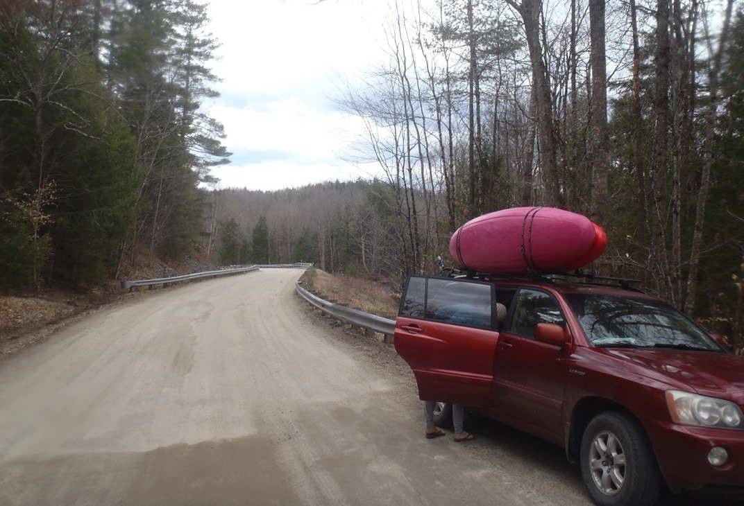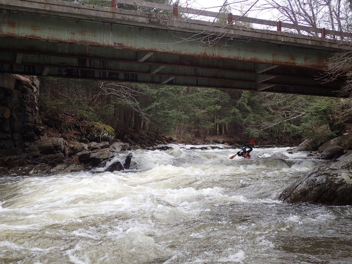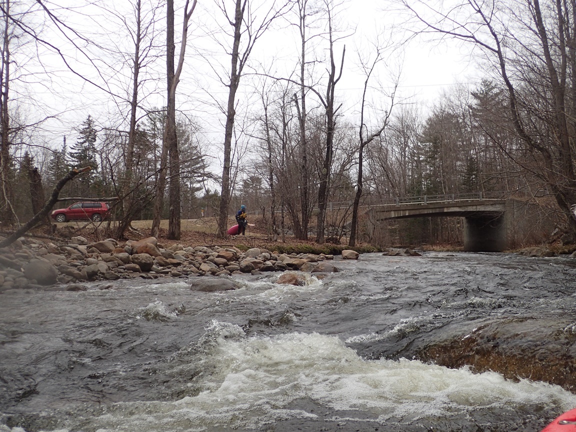 Put-in: Head back the way you can 100 yard, turn right continuing up North Dorchester Rd. Follow this 1.9 miles steeply up a couple of hills (I had to walk my bike finally near the end!) before turning left onto Bickford Woods Rd. Park on the far side of the bridge over Rocky Brook. You can also put-in on the South Baker upstream a mile of the confluence. I know that just above the confluence there was a cool drop, and after our trip I saw a video which actually made several other rapids look pretty good. Look at a map for those directions, it is easy to figure out.